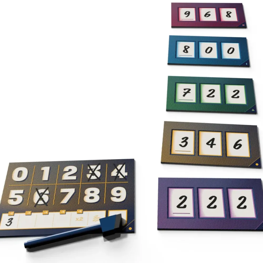 The Number Es Un Juego De Faroleo Y Riesgos Calculados En El Que Deberas Vencer A Tus Adversarios Demostrando Tu Astucia… ¡O Tu Audacia! Cada Turno, Los Jugadores Anotan En Secreto Un Numero Del 000 Al 999 En Sus Marcadores, Y Luego Los Ensenan Al Mismo Tiempo. Anotar Numeros Altos Otorga Mas Puntos, Pero Tambien Conlleva Un Riesgo… ¡Porque Si Alguno De Tus Digitos Aparece En Uno De Los Numeros Mas Bajos, No Ganaras Ningun Punto! A Medida Que Pasen Los Turnos, Cada Vez Habra Menos Opciones Y Sera Necesario Planificar Muy Bien Cada Decision. Al Cabo De 2 Rondas, Gana La Partida El Jugador Que Haya Acumulado La Puntuacion Mas Alta. Contenido 5 Marcadores De Puntos, 5 Tarjetas De Numero, 5 Rotuladores No Permanentes.