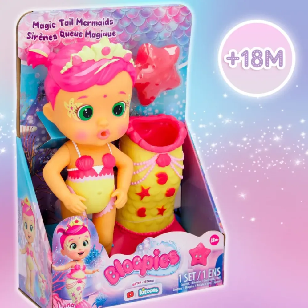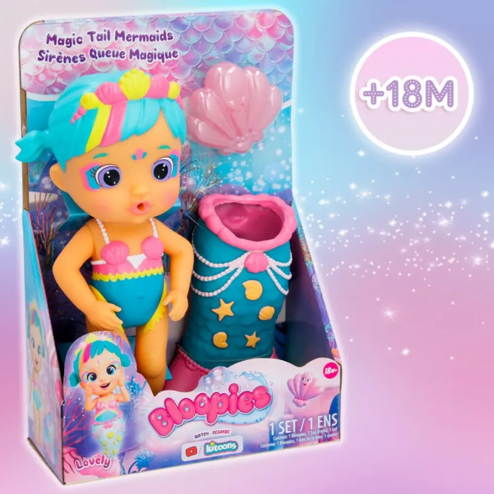 ¡Las Bloopies Sirenas Son Las Mejores Amigas Del Bano De Los Ninos! ¡Ahora Con Un Nuevo Y Magico Diseno De Cola Que Se Puede Quitar! Puedes Tener Dos Posibles Looks; En Banador O Con Cola De Sirena ¡Los Detalles De Sus Colas Cambian De Color En Agua Caliente! Las Bloopies Mermaids Y Sus Mascotitas De Mar Tienen Detalles En La Carita Y Bonitos Reflejos En El Pelo Que Las Hacen Aun Mas Especiales! ¡Sus Cuerpos Son Blanditos Y Cuando Los Aprietas, Las Sirenas Y Sus Mascotas Lanzan Agua Y Hacen Pompas! Se Venden Por Separado.