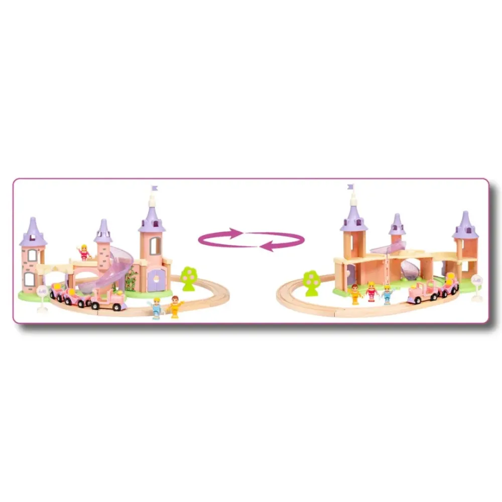 Acompana A Las Princesas Bella, Cenicienta Y La Bella Durmiente En Un Mundo De Ensueno Con El Set De Castillo De Princesa Disney 33312. Este Adorable Set Incluye Un Magnifico Castillo De Princesa, Vias De Tren De Madera, Un Tren De Princesas Con Vagones, Tres Princesas Disney Y Accesorios. Las Tres Princesas, Bella, Cenicienta Y La Bella Durmiente, Lucen Sus Clasicos Vestidos, Que Brillan Con Un Toque De Purpurina. Subete A Bordo Del Tren Rosa Y Cruza Las Majestuosas Puertas Del Castillo. Despues, Abre El Castillo Como Si Fuera Una Casa De Munecas Y Descubre Todas Las Estancias En Las Que Tus Munecas Pueden Cantar, Bailar Y Jugar. Sube A Lo Alto De La Torre Mas Grande Para Disfrutar De Unas Maravillosas Vistas Al Mundo De Cuento De Hadas, Y Luego Baja Por El Magico Tobogan Reluciente Para Volver A Subir Rapidamente Al Tren Y Poder Vivir Mas Aventuras.