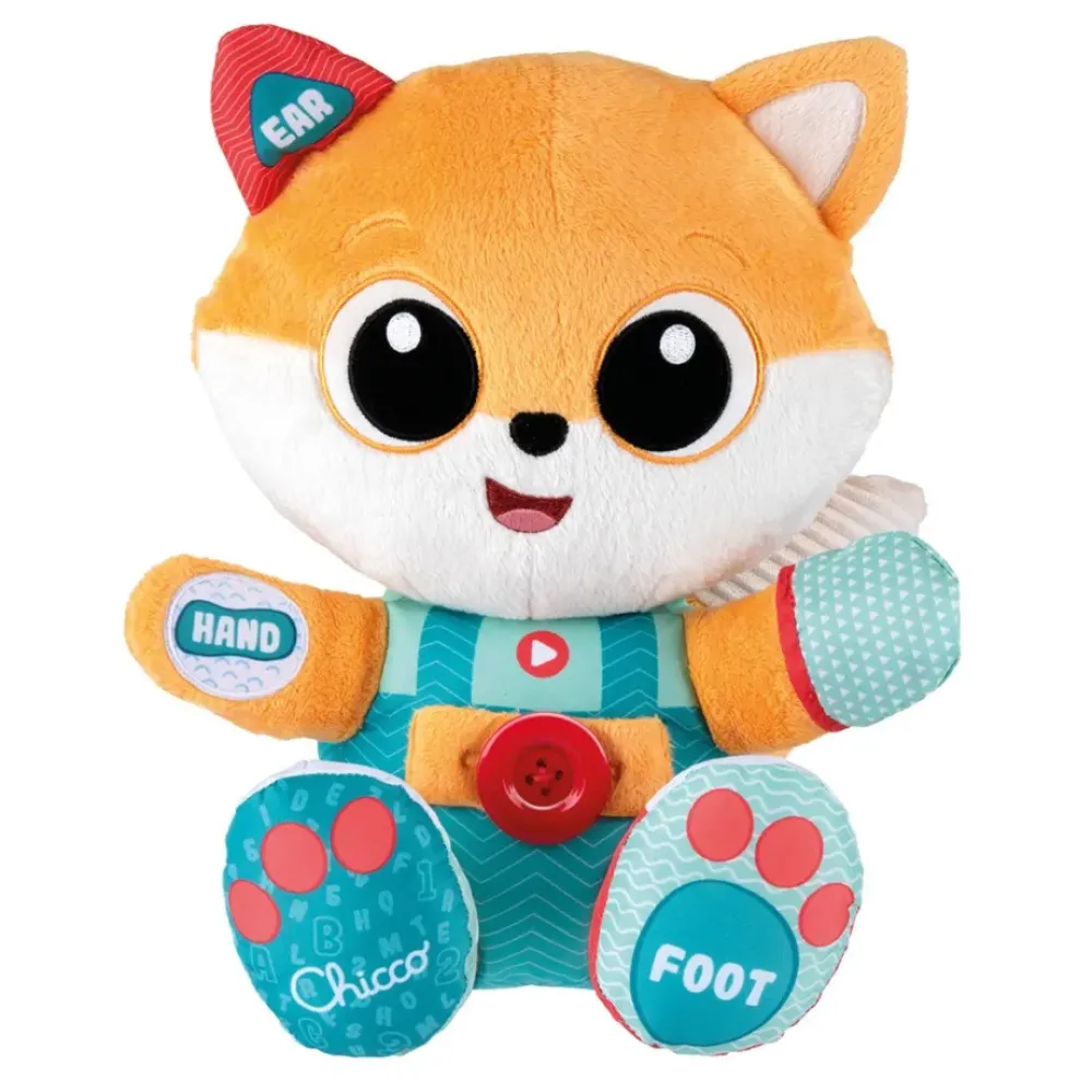 Chicco Peluche Foxy, Es Un Peluche Evolutico Bilingue, A Partir De Los 6 Meses Foxy Ensena A Los Bebes Las Primeras Palabras Y Rimas Divertidas Sobre Las Partes Del Cuerpo Y Ayuda A Desarrollar Las Habilidades Manuales, Ademas A Los 2 Anos Los Pequenos Pueden Empezar A Vestirse Solos Siguiendo Las Divertidas Y Entretenidas Indicaciones De Foxy. Contiene 3 Actividades Manuales Inspiradas En El Metodo Montessori Para Ayudar A Los Pequenos A Desarrollar Habilidades Motoras Finas Y De Coordinacion Mano-Ojo
