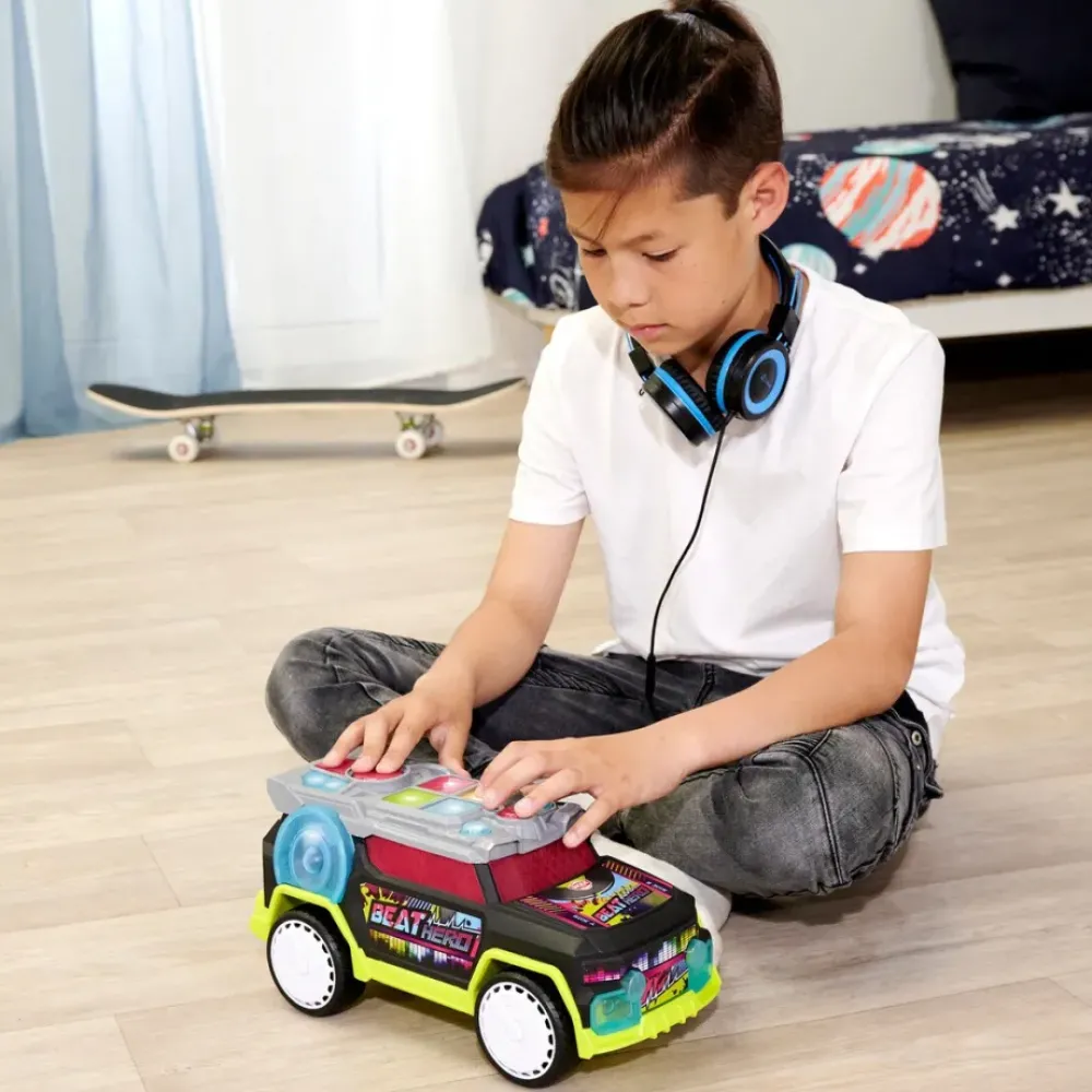 Beat Hero: Coche Electronico De Rueda Libre Con Luz, Sonido Y Musica. 3 Modos De Juego: Musica Libre, Grabacion De Musica Y Desafio De Memoria. Consola Dj En La Parte Superior Para El Control De Sonidos, Con 22 Sonidos Originales. Enchufe Tipo Jack Para Conectar Cascos O Altavoces.