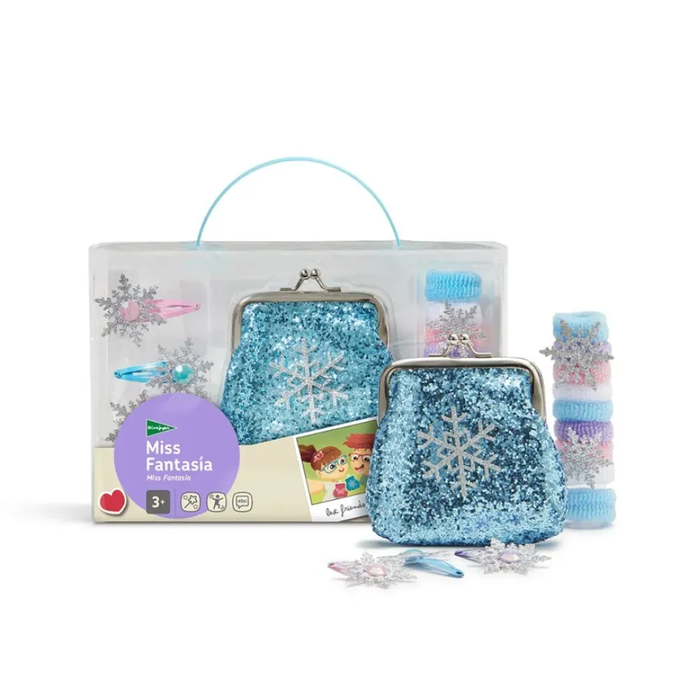 El Monedero Y Los Accesorios Para El Pelo Miss Fantasia Estan Indicados Para Ninos A Partir De 3 Anos. Estos Complementos Tan Llamativos Daran Color, Brillo Y Alegria A Cualquier Dia. El Set Incluye Monedero, 4 Horquillas Y 9 Gomas Para El Pelo Con Adornos De Mariposas, Flores Y Copos De Nieve. Hay Tres Modelos Diferentes. Se Surtiran Segun Existencias.