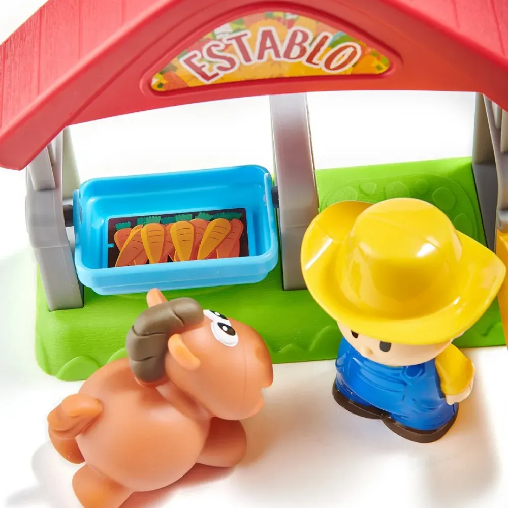 La Granja Interactiva El Establo De Don Pablo Esta Indicado Para Ninos A Partir De 12 Meses. ¡Bienvenidos Al Lugar Donde Cada Dia Es Especial! A Don Pablo Le Encantan Que Los Mas Pequenos De La Casa Le Ayuden En Las Tareas Diarias. Y Ellos Disfrutaran De Lo Lindo Manejando El Elevador Para La Bola De Heno, Recolectando Fruta, Peinando Al Caballo, Dandole De Comer A La Vaquita… ¡Y Todo Al Ritmo De Alegres Melodias! La Veleta Es Musical Y Las Puertas Se Abren Y Cierran. Tambien Aprenderan Los Colores Y A Identificar Los Animales, Desarrollaran La Motricidad Fina Y Se Inventaran Las Historias Mas Divertidas. Incluye Establo, Granjero, Vaca, Caballo Y Carro, Bola De Heno, Cesta Con Zanahorias, Cepillo Extraible Para El Caballo, Vallas Y Arboles. Funciona Con 2 Pilas Aaa (Incluidas).