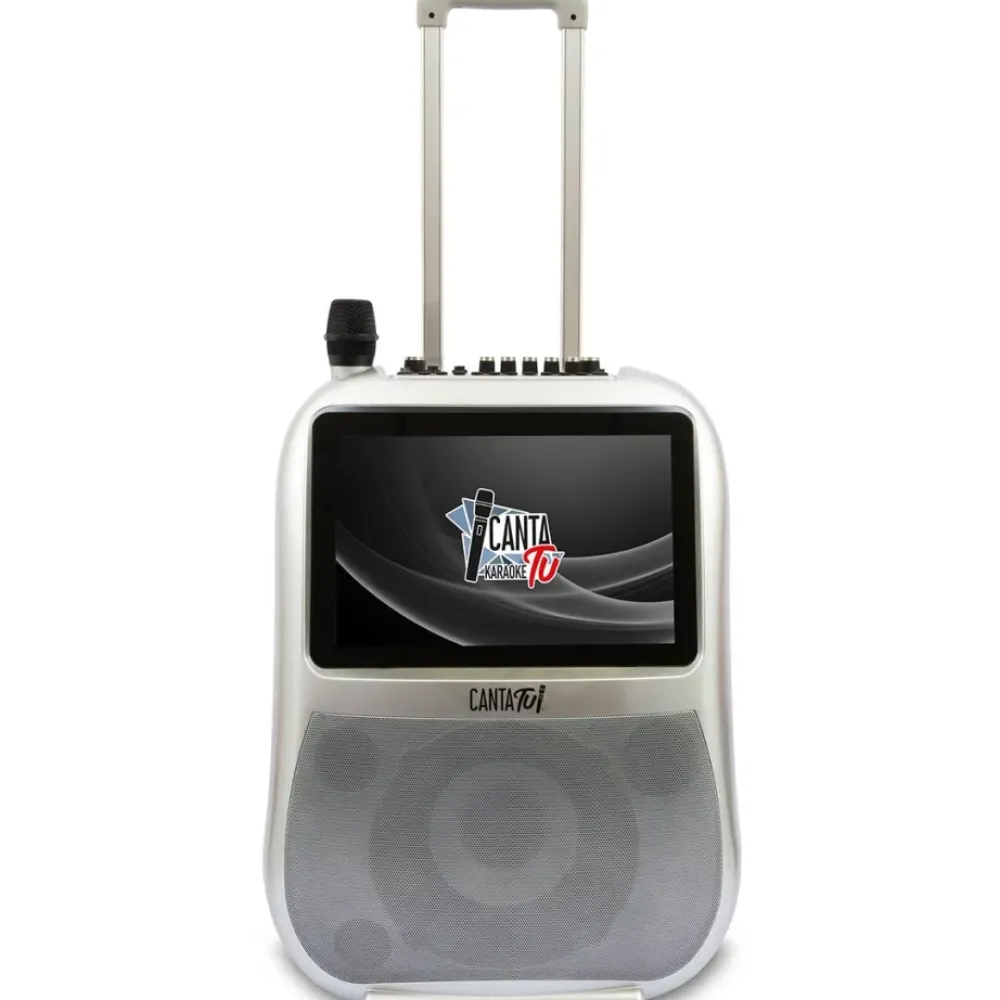 Canta Tu Es Un Sistema De Audio Y Video Completo De Alta Calidad, Que, Gracias A Sus Ruedas Y Mango Telescopico, Se Puede Transportar Facilmente A Cualquier Lugar, Para Animar Fiestas En Familia O Con Amigos, Al Aire Libre O En Interior. Se Conecta Mediante Wi-Fi Con Un Sistema Operativo Android Integrado, Y Tiene Una Pantalla Tactil Que Permite Un Uso Intuitivo E Inmediato De Los Controles. Ademas, Incluye Un Puerto Usb Y Una Memoria Interna Para Poder Conectar Tu Propia Musica. Tiene Un Juegos De Luces Con Efecto Multicolor Que Siguen El Ritmo De La Musica.