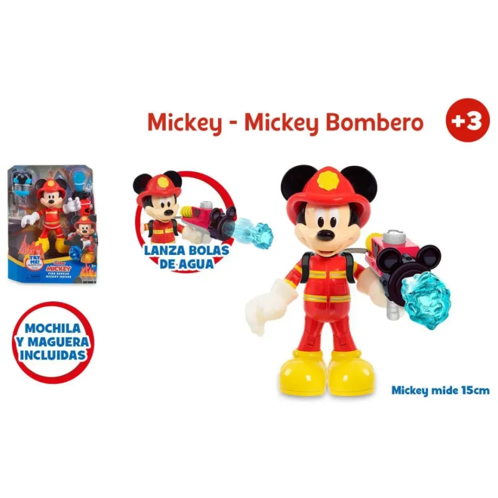 ¡Nueva Figura De Mickey Vestido De Bombero! La Figura Viene Con Todos Los Accesorios Para Que Mickey Sea El Mejor Bombero, Un Casco, La Mochila Y Una Manguera. La Figura Mide 15Cm Y Es Articulada.