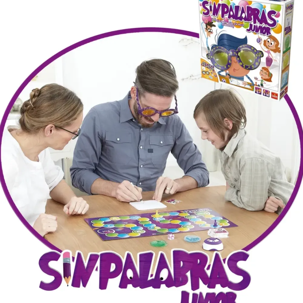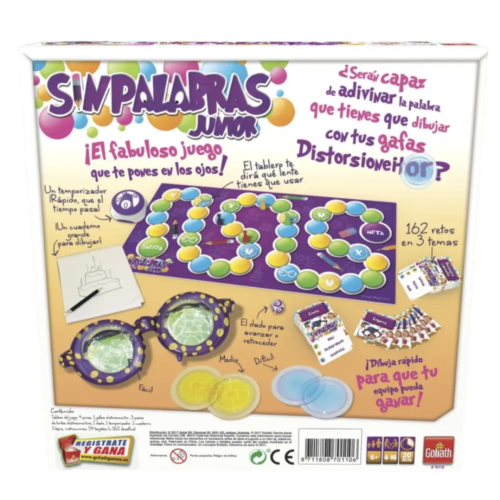 ¡Con Sin Palabras Junior Te »»Distorsionaras»» De Risa! Lanza El Dado, Avanza Por El Tablero Y Coge Una Carta. Mira Que Es Lo Que Te Toca Dibujar. El Tablero Te Dira Con Que Lentes Debes Dibujar. Cada Lente Tiene Una Dificultad Y Te Hace Ver De Una Forma Distinta. Ponte Las Gafas-Distorsioneitor Y… ¡Que Empiece El Tiempo!¡A Dibujar! ¿Conseguiras Ver Algo Con Estas Gafas Locas? Intenta Hacerlo Lo Mejor Posible O ¡Nadie Lo Adivinara! ¡La Diversion Se Multiplica Por 100 Con Estas Gafas! Se El Primero En Llegar A La Meta, Superando Todas Las Pruebas ¡Y Seras El Ganador!