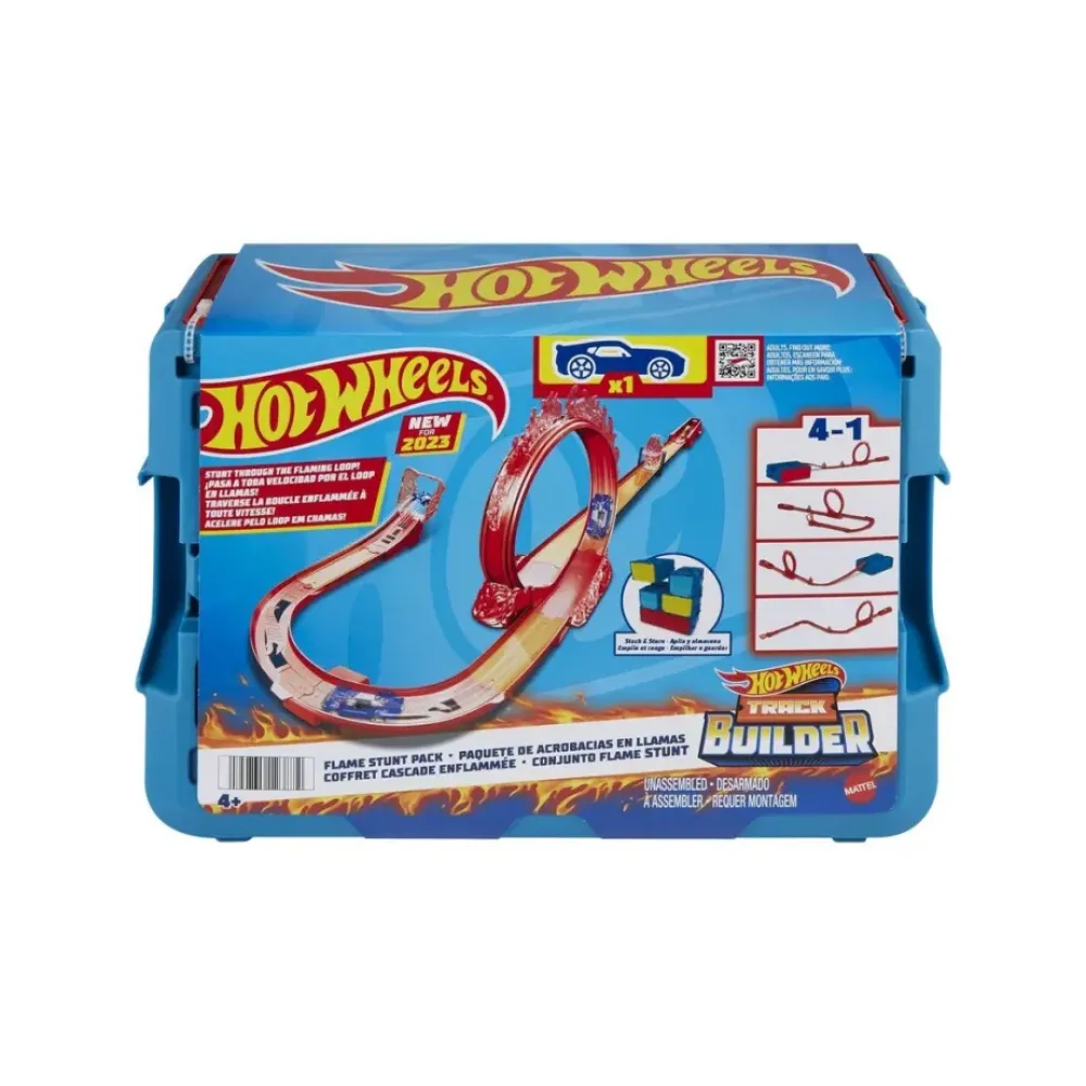 Anade Emocion A Las Carreras Y Acrobacias Con El Pack Acrobacias Flamigeras Track Builder De Hot Wheels. Incluye 16 Piezas Para Construir La Pista Con Una Tematica De Fuego, Como Un Bucle «Flamigero», Un Circulo De Fuego Y Propulsores Flamigeros, Que Caben De Forma Comoda Y Ordenada En Una Caja De Almacenamiento Modular. Los Ninos Pueden Construir Una De Las Cuatro Configuraciones De Pista Sugeridas O Crear Las Suyas Propias, Combinando Con Otras Pistas Hot Wheels. (Los Circuitos Adicionales Se Venden Por Separado). Incluye Un Vehiculo De Hot Wheels. La Decoracion Y Los Colores Pueden Ser Distintos De Los Mostrados.
