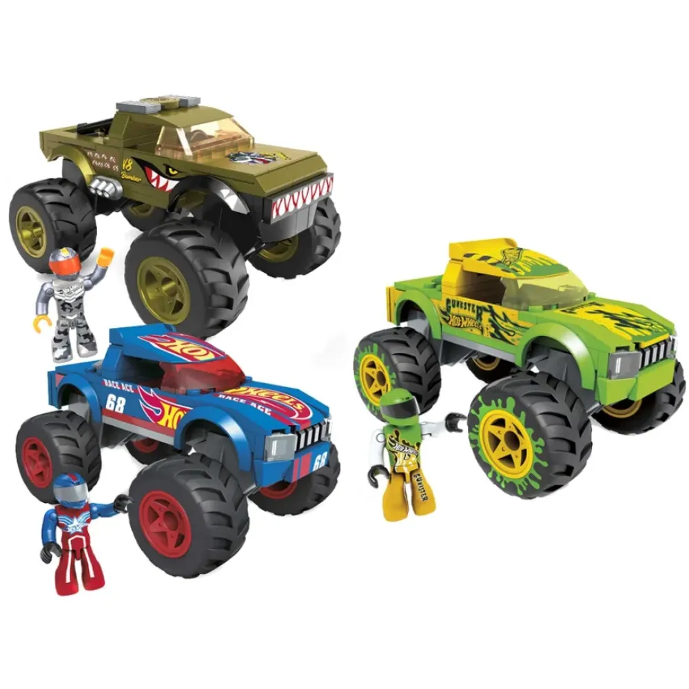 Hot Wheels Puzzles Y Construcciones*Conjuntos De Construccion Poderosos Monster Trucks De De Mega