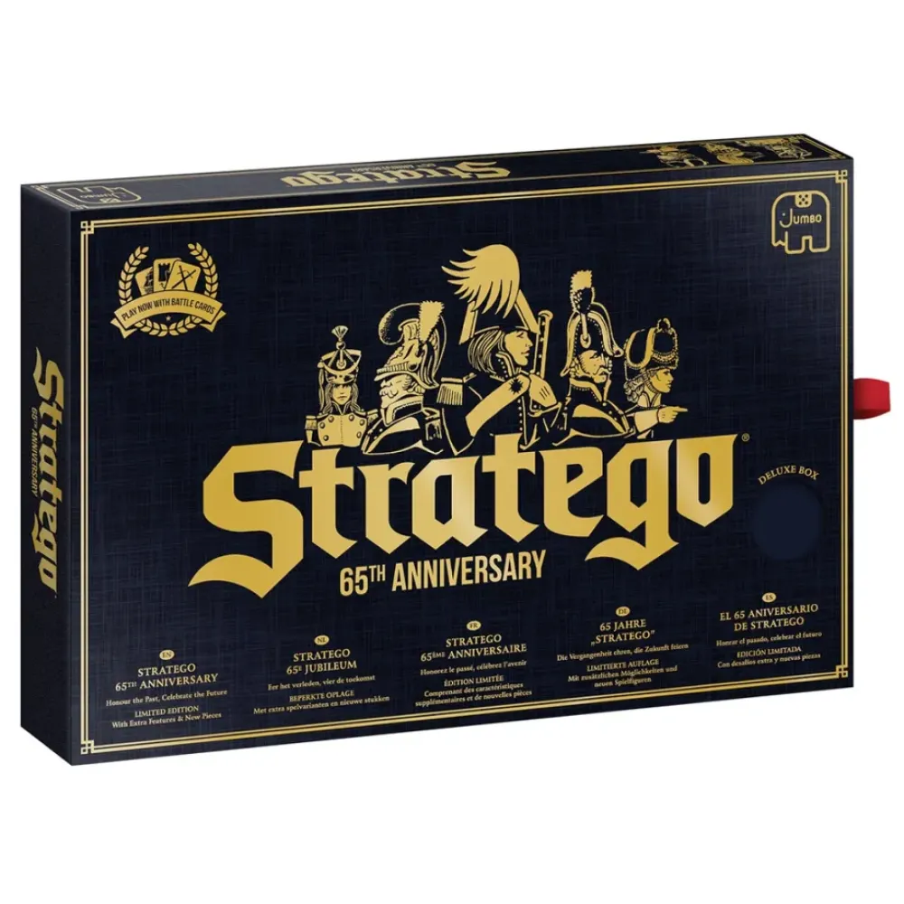 Esta Edicion Limitada Celebra Los 65 Anos De Stratego ¡Anadiendo Un Emocionante Giro! Con El Espia Ascendido A Mariscal, Las Nuevas Reclutas Ahora Se Alinean Junto A Los Combatientes Para Que Los Jugadores Puedan Personalizar Sus Tropas. Juega Con Las Reglas Originales O Experimenta Un Nuevo Modo De Juego Nunca Visto: Las Cartas De Batalla Te Permiten Probar Movimientos Ambiciosos, Lanzar Ataques Sorpresa Y Reforzar Tus Defensas. Junto Con Su Acabado De Lujo Y Unas Piezas De Juego De Alta Calidad Con Un Diseno Renovado, Es Hora De Escribir Una Nueva Pagina De La Historia De Stratego.