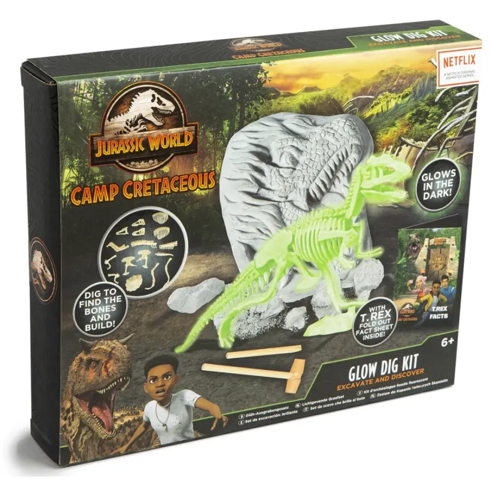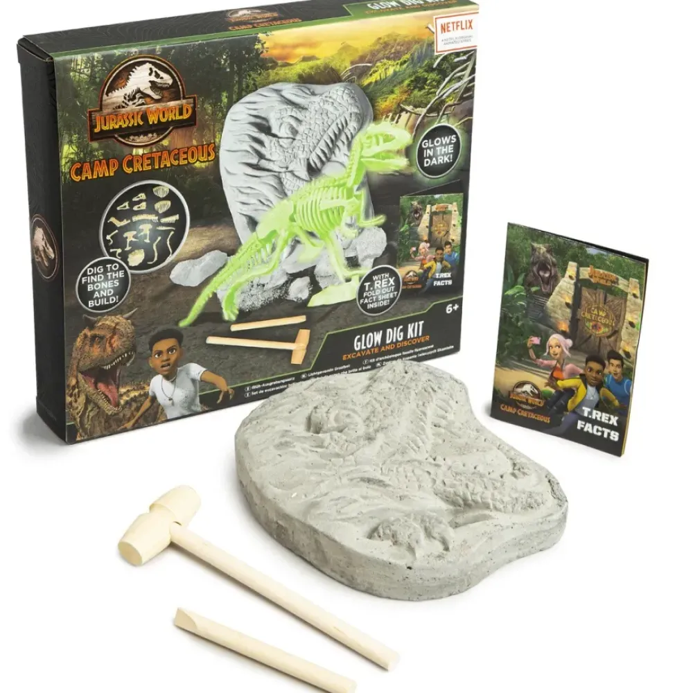 Este Kit De Excavacion Brillante Del Periodo Cretacico De Jurassic World Es Perfecto Para Que Los Fans De Los Dinosaurios Puedan Excavar En Busca De Huesos De T-Rex Que Brillen En La Oscuridad. El Kit Incluye: 1 Roca De Excavacion, 1 Rompecabezas De Construccion De Dinosaurios Luminosos, 1 Hoja Informativa De Dinosaurios Y 2 Herramientas.