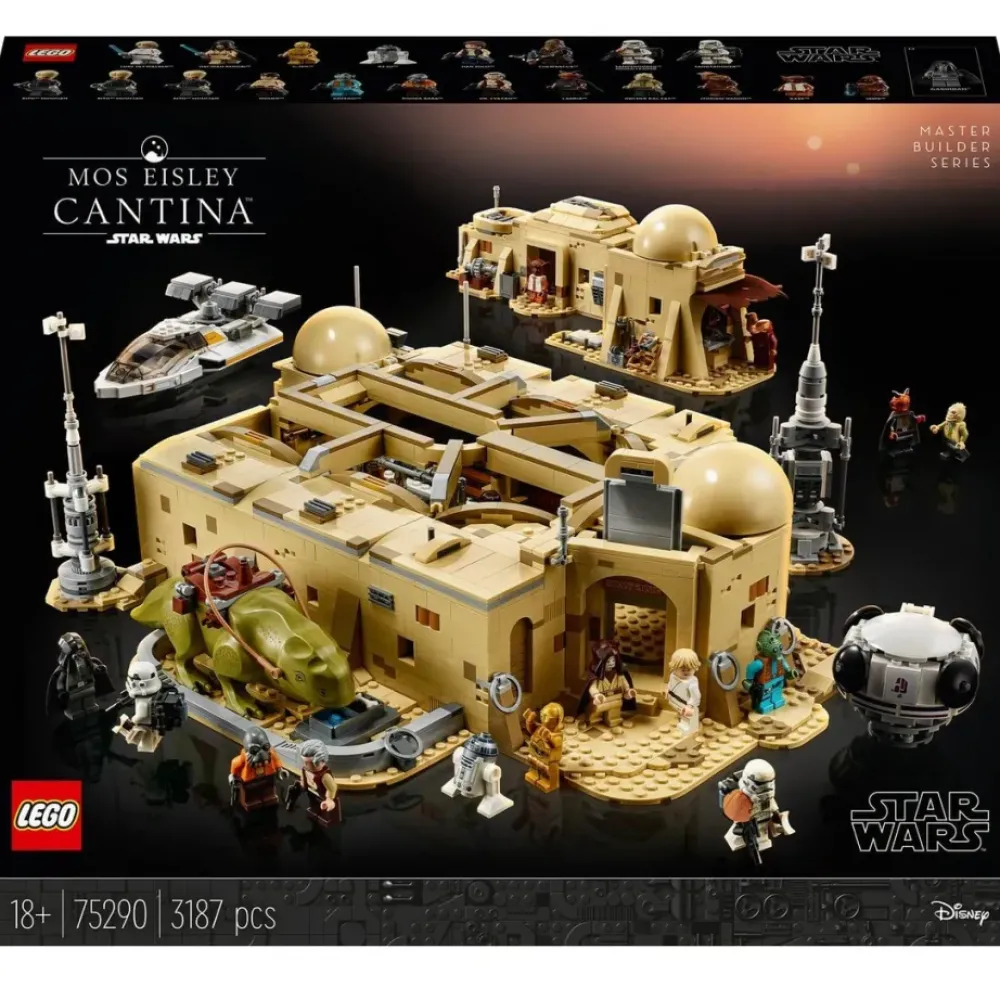 Revive Tus Momentos Favoritos De La Pelicula Star Wars: Una Nueva Esperanza Con Esta Increible Maqueta Para Construir Para Adultos Lego Star Wars Cantina De Mos Eisley (75290). Una Pieza De Mas De 3.000 Ladrillos Lego De La Coleccion Master Builder Series Especialmente Disenada Para Adultos Y Que Cuenta Con La Realista Taberna De Tatooine, 2 Edificios Acoplables, 2 Landspeeders Y Personajes De La Saga.