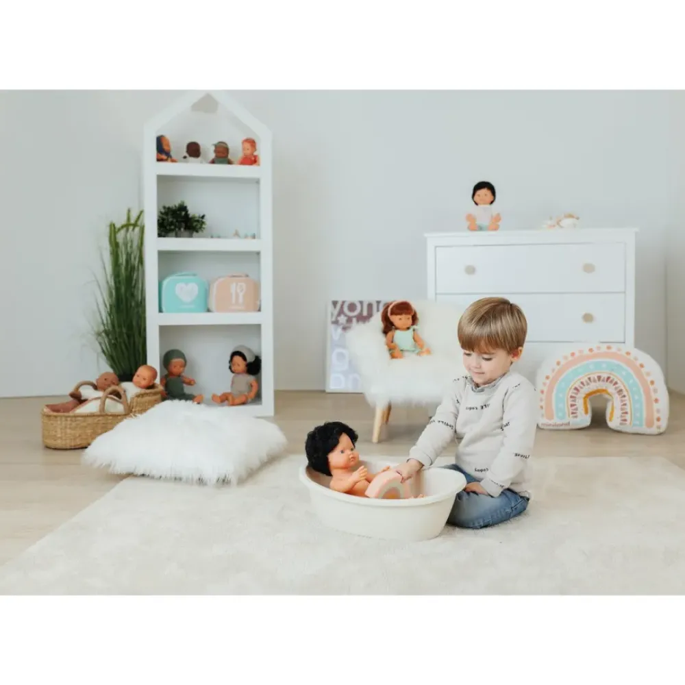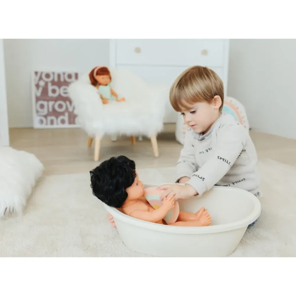 Banera De Bebe Fabricada Con Bioplastico Procedente De La Cana De Azucar, Para Banar A Los Muñecos Y Munecas Miniland Dolls De Hasta 40 Cm. Incorpora Una Esponjita Con Forma De Arcoiris Para Completar El Bano.