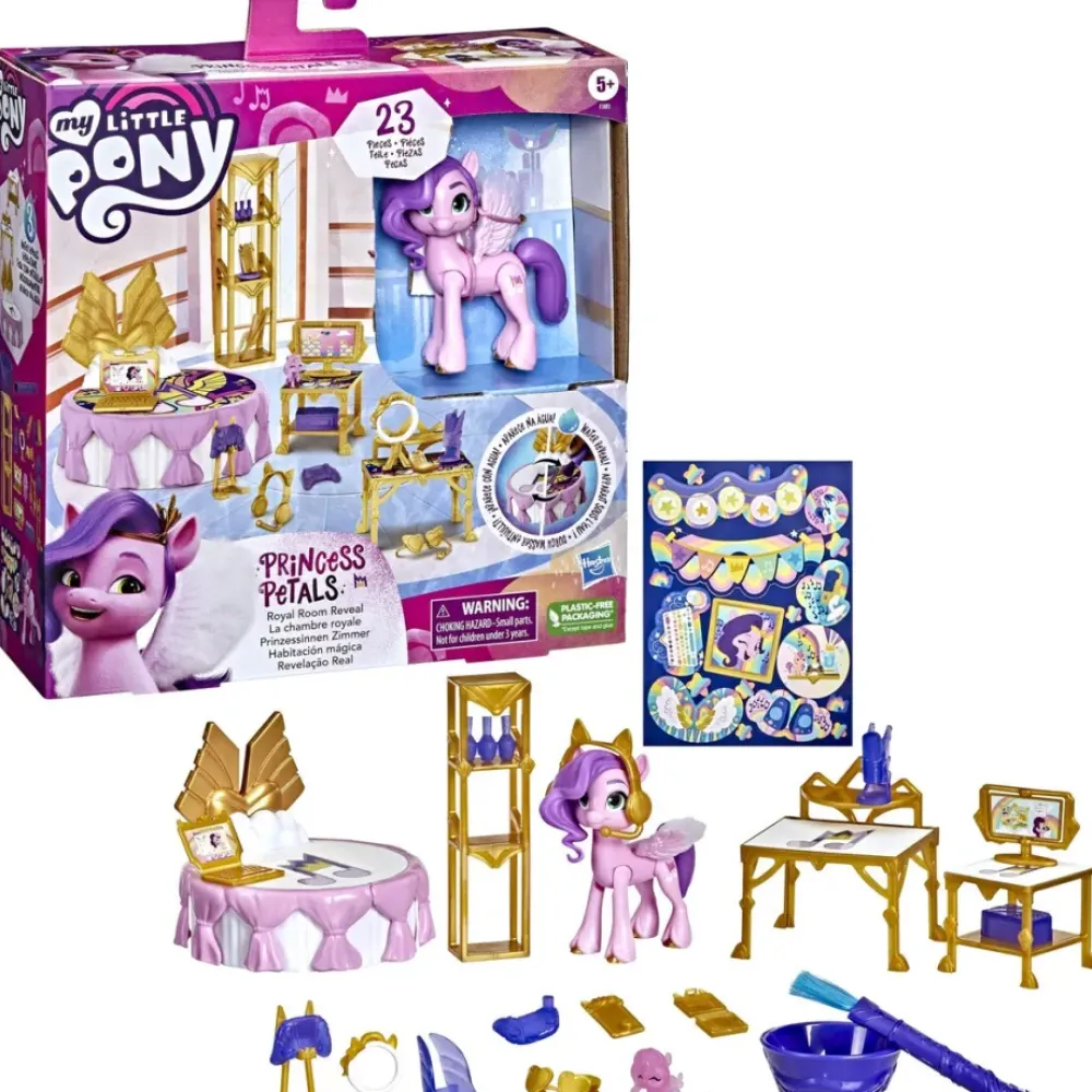 Conoce A La Princesa Pipp Petals: ¡Una Pegaso De Los Altos De Cefiro! La Princesa Petals Es Una Elegante Y Talentosa Estrella Del Pop. El Juguete «Princess Petals Habitacion Magica» Cuenta Con Una Sorpresa Multicolor Y Esta Inspirado En La Pelicula «My Little Pony: A New Generation». Incluye Una Figura De Poni De Princesa Pipp Petals Que Mide 7,5 Cm. La Figura Es Articulada Y Cuenta Con Una Cutie Mark En Forma De Nota Musical En Un Costado. Su Cabello Es De Plastico Morado Y Tiene Su Estilo Rizado Caracteristico. Viene Con 23 Piezas Y Un Decorado De Fondo De Papel Para Una Habitacion De Princesa Perfecta. 3 Accesorios Cambian De Color Por Efecto Del Agua. Utiliza El Bol De Agua Y El Pincel Incluidos Para Cubrir De Agua La Cama Y Los 2 Accesorios De Escritorio. Descubre Colores Y Disenos Ocultos Que Se Desvanecen Despues De 10 Minutos Para Jugar Una Y Otra Vez. Los Fans Nuevos Y Los De Siempre Pueden Imaginar Aventuras Con Los Juguetes De La Pelicula «My Little Pony: A New Generation», Que Son Ideales Como Regalos De Cumpleanos O De Navidad. Edad Recomendada: A Partir De 5 Anos. My Little Pony Y Todos Los Personajes Relacionados Son Marcas Registradas De Hasbro.