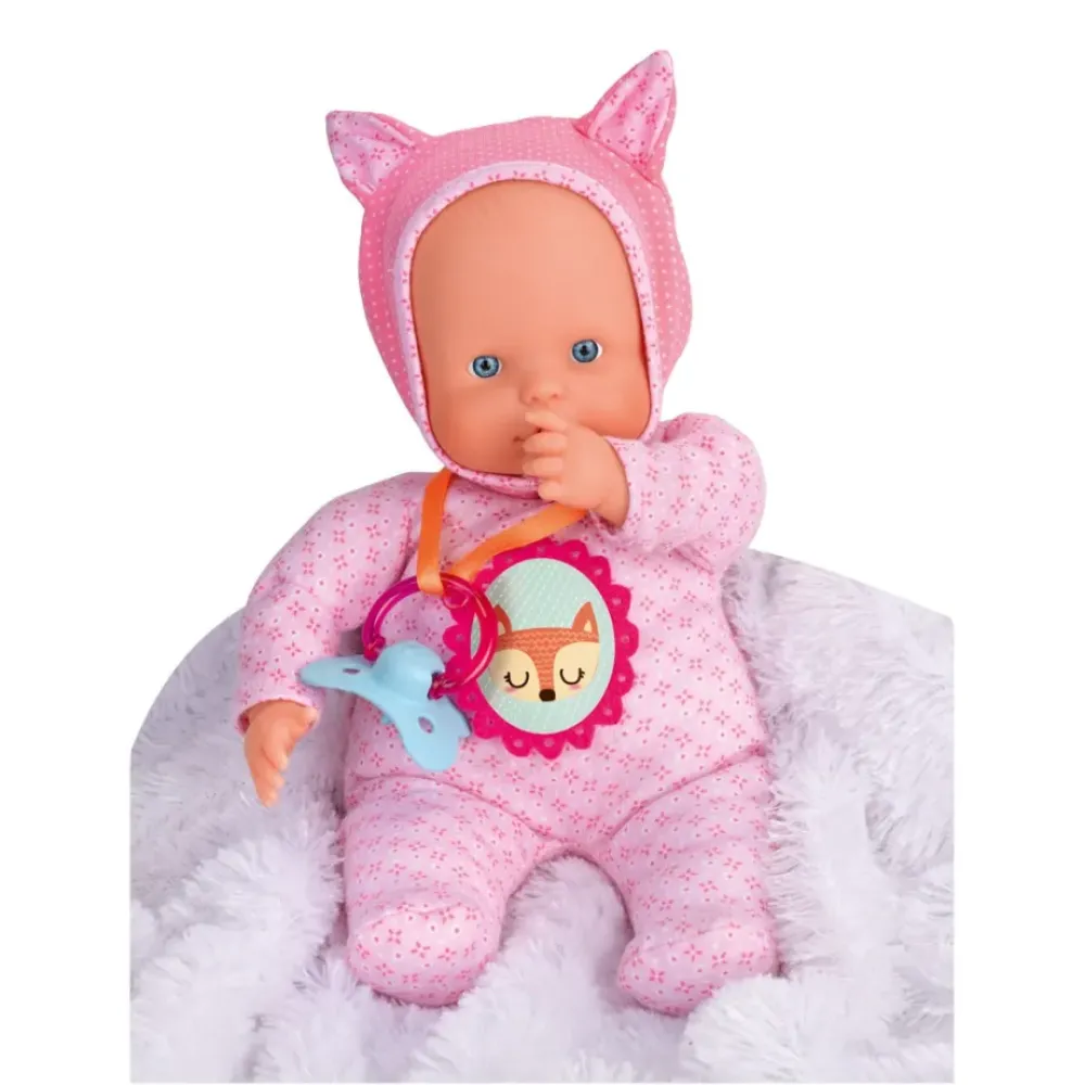 Muneco Blandito Con Chupete Y 5 Funciones. Si Aprietas Sus Manos Dira Pa-Pa Y Ma-Ma, Y Al Apretarle La Barriga Se Reira. Ademas, Si Le Das El Chupete Hara Sonidos De Succion, Pero Si Se Lo Quitas Se Pondra A Llorar. Tambien Puede Meterse El Dedo En La Boca Como Los Bebes De Verdad.