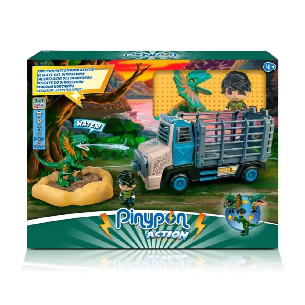 Set Completo De Rescate Del Dinosaurio Dilophosaurus Que Se Ha Quedado Atrapado En Un Pozo De Arenas Movedizas (Arena Magica). Esta Especie De Dinosaurio Asusta A Sus Enemigos Escupiendo, La Figura Tambien Escupe, Llenando El Deposito Que Tiene En La Cabeza Con Agua. El Explorador Pinypon Action Rescate Al Dinosaurio Con Su Camion Especial, Arrastrandole De Las Arenas Con La Polea Y Despues Le Transporta A Un Lugar Seguro En La Parte Detras Del Camion. El Camion Esta Especialmente Reforzado Tanto Para Transportar Dinosaurios Como Para Proteger Al Conductor, Y Es Compatible Con Todos Los Dinosaurios De La Coleccion De Pinypon Action.
