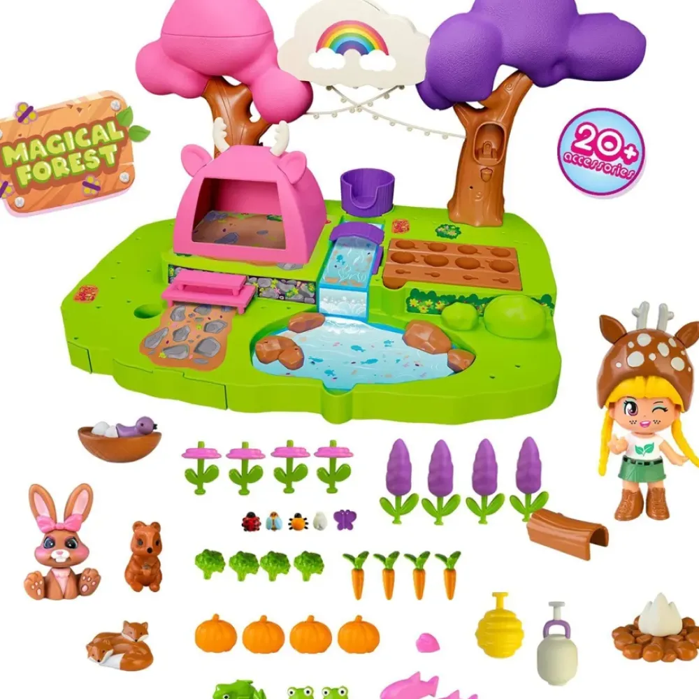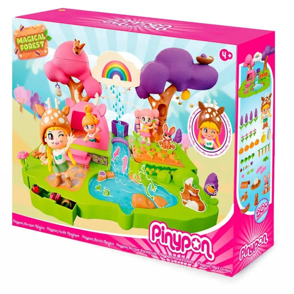 Descubre La Naturaleza Y Conoce Todas Las Sorpresas Magicas Escondidas En El Bosque Magico De Pinypon. Hay Una Nube Magica Que Se Puede Llenar De Agua Y Empezara A Llover. El Agua Recorre El Rio Hasta Llegar Al Huerto Ecologico Y Hace Crecer Las Verduras De Verdad. Este Bosque Magico Esta Repleto De Animalitos Que Se Esconden En Los Rincones: Ardillita, Zorros, Peces, Pajaritos, Etc. Se Duerme En Una Tienda De Campana. Con Una Figura De Pinypon Exploradora Y Accesorios Que Brillan En La Oscuridad. El Escenario Tiene Compartimentos Secretos Para Guardar Todos Los Accesorios Que Incluye.