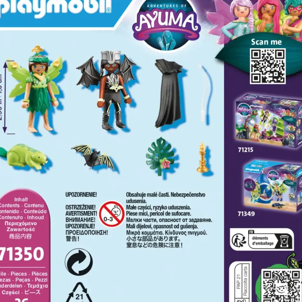 ¡Sumergete En El Magico Mundo De Las Aventuras De Ayuma! La Forest Fairy Lamika Y La Bat Fairy Nerissa Solian Ser Rivales, Pero Ahora Comparten Una Profunda Amistad. Junto Con Sus Almas Animales, El Castor Y El Murcielago, Se Divierten En El Bosque De Las Hadas. Con Personajes Unicos, Almas Animales Magicas Y Efectos Sorprendentes, Los Conjuntos De Juego De Ayuma De Playmobil Invitan A Ninos De 7 A 12 Anos A Vivir Emocionantes Aventuras De Juego De Roles Creativas.