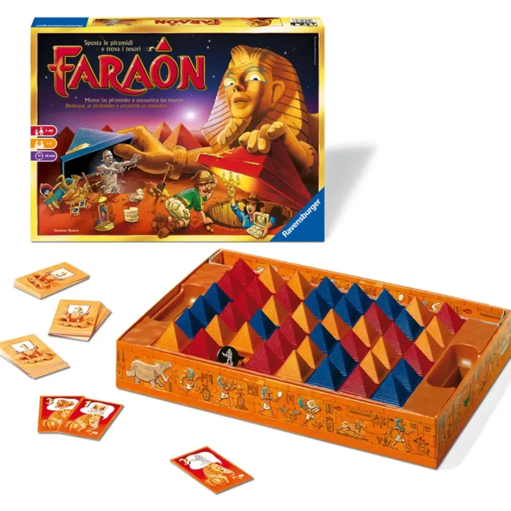 Ravensburger – Faraon, Juegos De Mesa, Da 1 A 5 Jugadores, 7+ Anos. ¡Mueve Con Astucia Las Piramides Y Encuentra El Tesoro! Debajo De Las 47 Majestuosas Piramides, El Faraon Ha Escondido Sus Tesoros. ¿Como Encontrarlos? Mueve Las Piramides, Memoriza El Recorrido Y Encuentra Preciosos Tesoros… ¡Pero Cuidado Con La Maldicion De La Momia!¡Mueve Las Piramides Y Descubre El Tesoro Con Este Divertidisimo Juego Para Toda La Familia!En Tu Turno, Revelas Una Carta De Tesoro, Luego Mueves Las Piramides Hasta Encontrar Un Tesoro: Si Es El Que Se Veia En La Carta, ¡Lo Has Conseguido! Pero Cuidado, Porque En Vuestro Recorrido Revelareis Pistas Utiles Para Los Demas Jugadores.