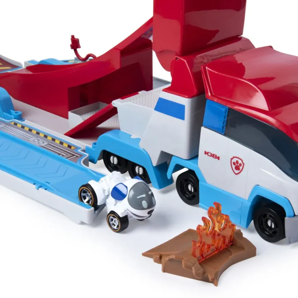 ¡Lanzate A Toda Velocidad Al Rescate Con El Patrullador Canino Lanzador-Transportador De Paw Patrol! El Vehiculo Del Equipo Favorito De Los Fans Se Abre Y Se Transforma En Un Conjunto De Pistas Lleno De Accion Para Los Vehiculos True Metal De Paw Patrol (Se Venden Por Separado). Con Capacidad Para Siete Vehiculos True Metal Coleccionables, Cargar A Los Perritos Para Correr Hacia Emocionantes Misiones De Rescate Es Muy Facil. Los Ninos Podran Desplegar El Patrullador Canino Para Descubrir Un Conjunto De Pistas Con Misiones Para Salvar El Dia, ¡Como En La Serie De Television! Este Conjunto Incluye Un Vehiculo Metalico Exclusivo De Perrobot A Escala 1:55. Hay Que Apagar El Fuego, Perrobot Necesita Una Puesta A Punto Y Un Oso Esta Atrapado Debajo De Unas Rocas. Con Estas Tres Emocionantes Misiones De Rescate, Corre Y Salva El Dia Con El Patrullador Canino Lanzador-Transportador 2 En 1 De Paw Patrol!