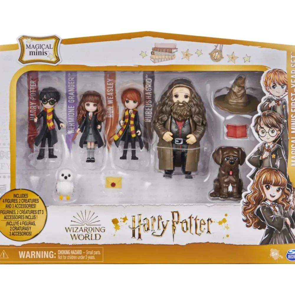 Recrea El Primer Ano En Hogwarts Con Tus Personajes Favoritos De Harry Potter Y El Wizarding World Magical Minis First-Year Set. Este Conjunto De Muñecos De Harry Potter Es Imprescindible Para Los Fans. Incluye A Los Muñecos De Harry Potter, Hermione Granger, Ron Weasley De 7,6 Cm Y Al Muneco De Rubeus Hagrid De 10,2 Cm, Ademas De Tres Accesorios, Hedwig Y Fang. Cada Muneco Tiene Muchos Detalles Que Hacen Cobrar Vida A Los Entranables Personajes De Harry Potter. Con Los Uniformes De Hogwarts Del Trio Y El Cabello Largo Y El Abrigo De Hagrid, Estos Articulos Coleccionables Magical Minis De Harry Potter Estan Listos Para Interminables Aventuras Fascinantes. Coloca El Sombrero Seleccionador A Cualquiera De Las Figuras Y Recrea La Emblematica Ceremonia De Seleccion. Con Sus Detalles Identicos A Los Del Personaje, Puedes Ayudar A Hedwig A Entregar Mensajes Importantes Con El Sobre De Hogwarts Y Fang Puede Acompanar A Tus Figuras En Cada Aventura. El Magical Minis First-Year Set Es La Manera Perfecta De Inspirar Tu Imaginacion A Traves De Un Divertido Y Emocionante Juego De Simulacion. Para Idear Mas Formas De Jugar, Explora Los Pasillos Del Magical Minis Hogwarts Castle (Se Vende Por Separado) Y Colecciona Todos Los Muñecos, Los Friendship Sets Y Los Escenarios (Se Venden Por Separado) Para Construir Tu Propio Wizarding World. Los Pequenos Muñecos Magical Minis Y El First-Year Set Son Excelentes Regalos Para Ninos A Partir De 5 Anos. Revive El Primer Ano En Hogwarts Con El Wizarding World Magical Minis First-Year Set.