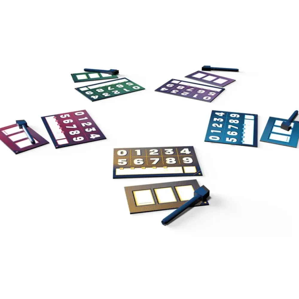 The Number Es Un Juego De Faroleo Y Riesgos Calculados En El Que Deberas Vencer A Tus Adversarios Demostrando Tu Astucia… ¡O Tu Audacia! Cada Turno, Los Jugadores Anotan En Secreto Un Numero Del 000 Al 999 En Sus Marcadores, Y Luego Los Ensenan Al Mismo Tiempo. Anotar Numeros Altos Otorga Mas Puntos, Pero Tambien Conlleva Un Riesgo… ¡Porque Si Alguno De Tus Digitos Aparece En Uno De Los Numeros Mas Bajos, No Ganaras Ningun Punto! A Medida Que Pasen Los Turnos, Cada Vez Habra Menos Opciones Y Sera Necesario Planificar Muy Bien Cada Decision. Al Cabo De 2 Rondas, Gana La Partida El Jugador Que Haya Acumulado La Puntuacion Mas Alta. Contenido 5 Marcadores De Puntos, 5 Tarjetas De Numero, 5 Rotuladores No Permanentes.