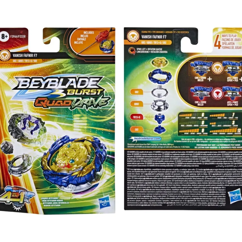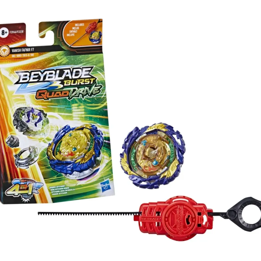 ¡Beyblade Burst Quaddrive Te Lanza Al Futuro De Beyblade Con El Primer Top De Beyblade 4 En 1! Los Tops Pueden Configurarse De 4 Maneras, Lo Que Te Permite Personalizarlos Como Nunca Antes Para Obtener La Maxima Ventaja En La Batalla.