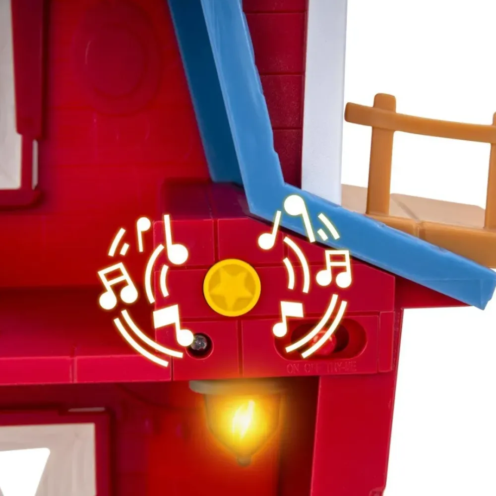 Recrear El Lugar De Reunion De Los Personajes De La Serie De Dino Ranch Con El Clubhouse. Un Playset Super Completo Que Contiene 14 Piezas: A Jon -El Hermano Pequeno-, Min -Su Hermana-, Sus Dos Dinosaurios (Blitz Y Clover) Y Un Monton De Accesorios Para Que La Experiencia De Juego Sea Mucho Mas Completa. Tiene Cinco Zonas De Juego Diferentes: La Torre De Vigilancia Con Una Torre Secreta, Una Trampilla, Una Habitacion Secreta, Un Tobogan Para Bajar Rapidamente Y Hay Una Pared Que Se Derrumba. Tambien Viene Con Luces Y Sonidos, Al Pulsar El Boton De La Estrella Para Encender La Lampara Se Activaran Las Frases Que Tiene Incluidas.