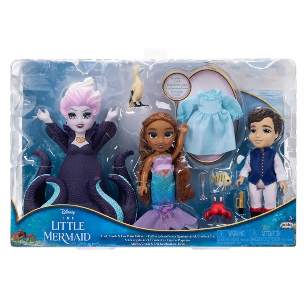 Este Magico Set Incluye Todo Lo Que Necesitas Para Recrear Las Emocionantes Historias De La Pelicula «La Sirenita» De Disney. En Primer Lugar, Encontraras A Ariel, La Encantadora Sirena De 15 Cm, Con Su Caracteristico Atuendo De Sirena. Podras Sumergirte En Las Profundidades Del Oceano Mientras Ariel Explora Su Hogar Submarino. Ademas, Ariel Viene Con Su Fiel Dinglehopper Y Su Catalejo, Accesorios Iconicos Que La Ayudan A Descubrir Tesoros Y Secretos Ocultos. Pero Eso No Es Todo, El Set Tambien Incluye El Emblematico Vestido Azul De Ariel, Para Que Puedas Transformarla De Una Sirena Aventurera A Una Princesa Elegante En Un Abrir Y Cerrar De Ojos. Tambien Encontraras A Eric, El Apuesto Principe, De 15 Cm Con Su Capota De Tela, Listo Para Embarcarse En Una Emocionante Historia De Amor Y Valentia. Junto A Eric, Tendras La Compania De Los Amigos Acuaticos Mas Adorables: Flounder, Sebastian Y Scuttle. Estos Personajes Aportaran Alegria Y Diversion A Tus Aventuras Bajo El Mar. Pero Cuidado, Porque En Las Profundidades Del Oceano Tambien Encontraras A La Temible Ursula, La Malvada Bruja Del Mar. Con Sus 15 Cm De Altura, Esta Figura Captura La Malicia Y El Poder De Uno De Los Villanos Mas Emblematicos De Disney.