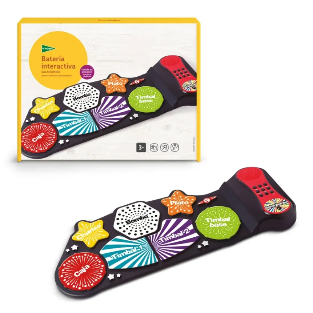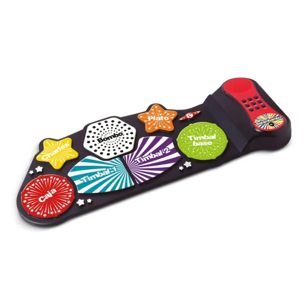 La Bateria Interactiva Balambambu Esta Indicada Para Ninos A Partir De 3 Anos. No Ocupa Espacio Y Se Toca Con Las Manos, Por Lo Que Es Ideal Para Iniciarse En El Mundo De La Musica. El Peque Podra Sentirse Como Una Autentica Estrella Y Pasarlo En Grande Mientras Le Da A Los Platos, Al Bombo O Los Timbales. Tiene 3 Estilos De Bateria (Pop, Rock Y Electronico), 10 Melodias Pregrabadas, 10 Ritmos Y Funcion De Grabacion. Y, Si Quieres, Tambien Puedes Conectarle Unos Auriculares. Funciona Con 4 Pilas Aaa (No Incluidas) O Con Cable Usb (Incluido).