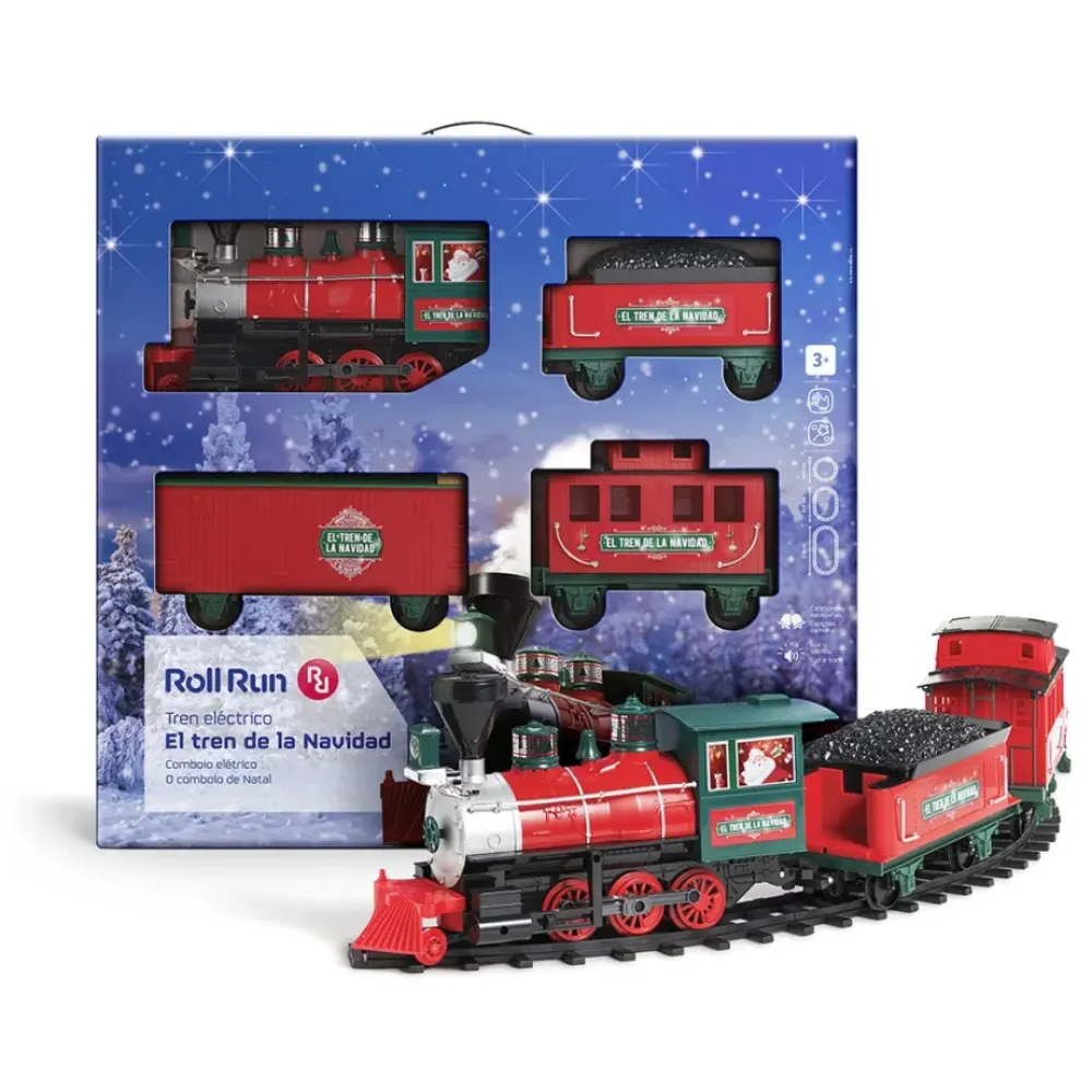El Tren Electrico El Tren De La Navidad Esta Indicado Para Ninos A Partir De 3 Anos.Con El En Casa, Los Mas Pequenos Sentiran La Magia Del Momento Mas Especial Del Ano. Tiene Luz En El Faro Delantero, Sonido Real De Tren Y Vagones Autoenganchables. Es Muy Facil De Montar Y Poner En Marcha. Incluye Locomotora, Deposito De Carbon, Vagon Cerrado, Furgon De Cola, 16 Vias Y Senales De Trafico Para Indicar El Camino A Papa Noel. Medidas: 178 Cm.