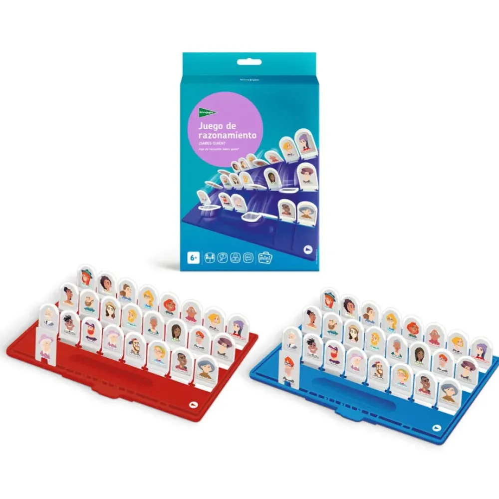 El Juego De Razonamiento ¿Sabes Quien? Esta Indicado Para Ninos A Partir De 6 Anos. Una Divertida Carrera Por Adivinar La Cara Misteriosa Antes Que Tu Oponente. ¿Es Mujer? Clac, Clac, Clac. ¿Tiene Los Ojos Azules? Clac, Clac, Clac. ¿Lleva Gorro? Clac, Clac, Clac. El Objetivo Consiste En Ir Descartando Personajes Haciendo Preguntas Cuya Respuesta Sea «Si» O «No». Incluye 2 Tableros Y 24 Caras Misteriosas. Para 2 Jugadores. Medidas De Cada Tablero: 25 X 6,5 X 17,7 Cm.