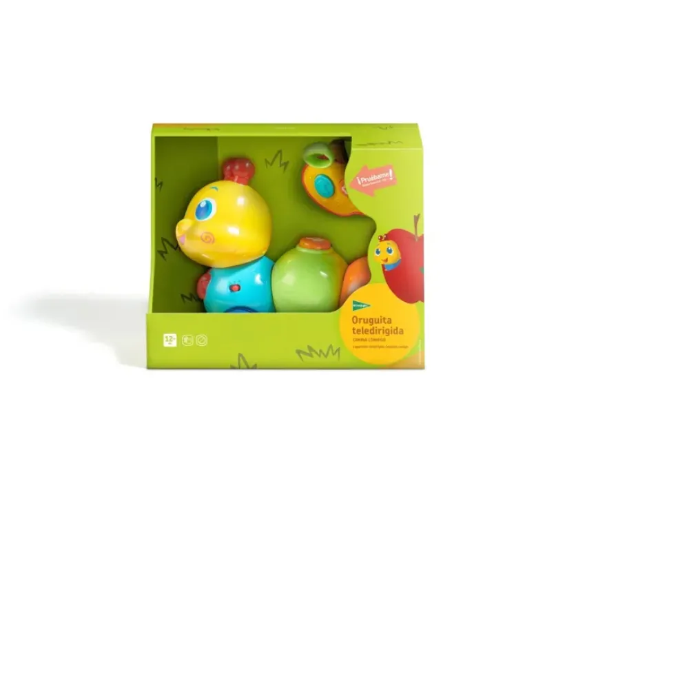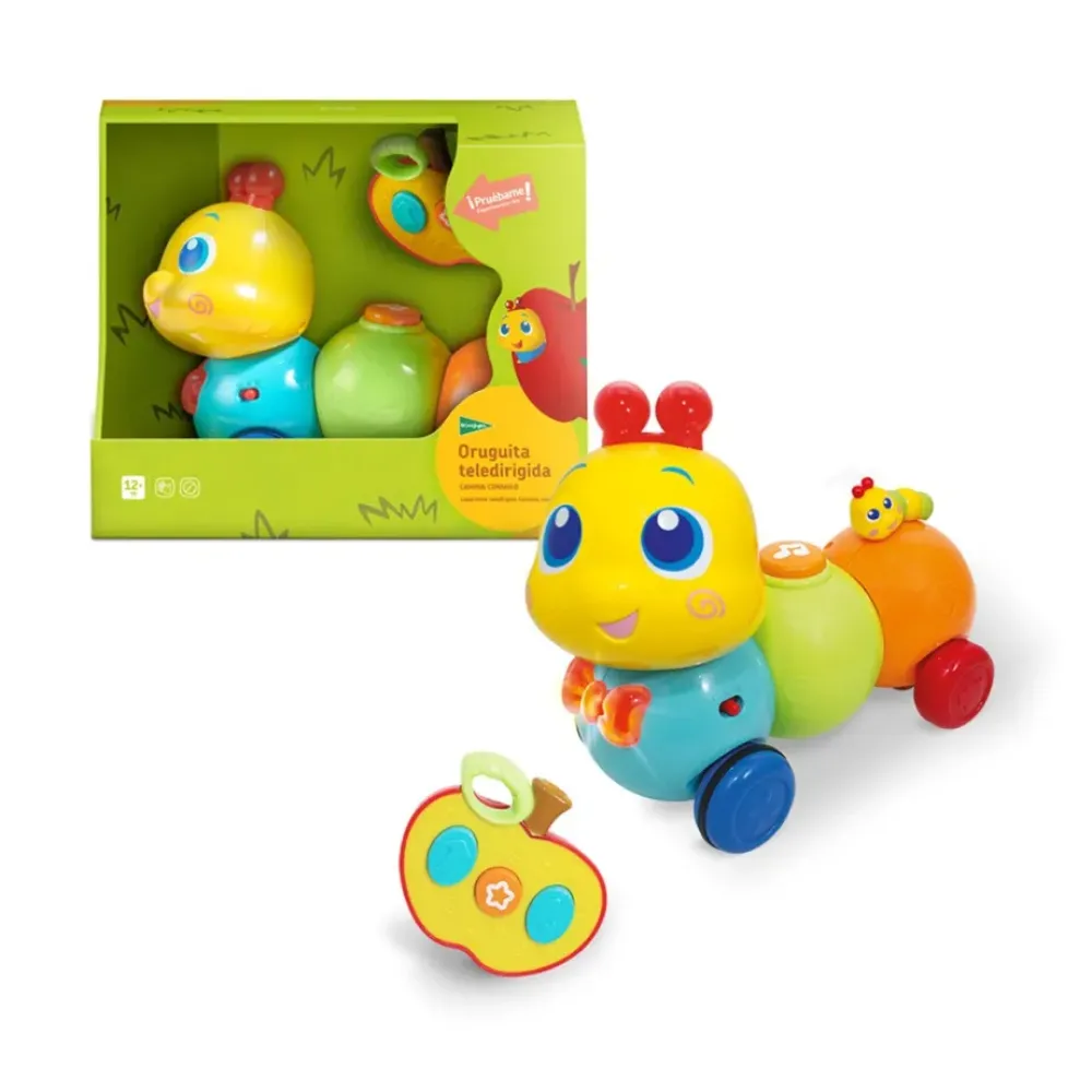 La Oruguita Teledirigida Camina Conmigo Esta Indicada Para Ninos A Partir De 12 Meses. Esta Elegante Y Simpatica Companera De Aventuras Animara A Tu Peque A Gatear O Caminar Detras De Ella Por Toda La Casa. Luce Una Llamativa Pajarita Que Se Ilumina Y Tiene Unos Divertidos Andares, Moviendo Su Cabecita De Un Lado A Otro Y Subiendo Y Bajando Su Cuerpo Flexible. Su Original Mando Con Forma De Manzana Se Adapta Perfectamente A Sus Manitas Y Es Facil De Manejar, Con Solo 3 Sencillas Funciones: Avance, Retroceso Con Giro Y Efectos De Sonido. Y Tranquilos, Que El Volumen Se Puede Ajustar. La Oruga Funciona Con 3 Pilas Aa (Incluidas) Y El Mando Funciona Con 2 Pilas Aaa (No Incluidas).