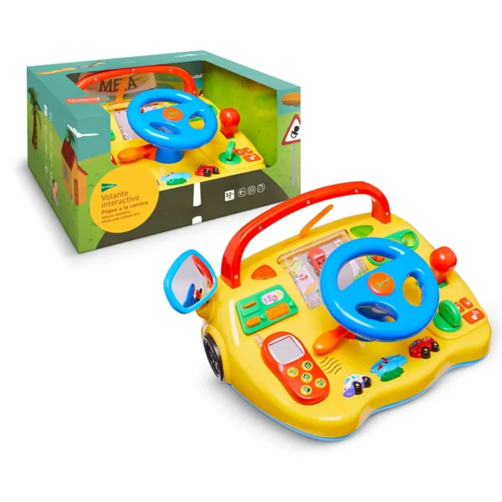 El Volante Interactivo Peque A La Carrera Esta Indicado Para Ninos A Partir De 12 Meses. ¡Sube, Que Te Llevo! Empieza El Viaje Mas Divertido, Al Ritmo De Marchosas Melodias Y Un Monton De Alegres Sonidos. Todo Un Mundo De Sensaciones Para Explorar, Tocando La Palanca De Los Intermitentes, Presionando El Claxon, Cambiando Las Marchas, Accionando La Llave Para Encender El Coche… Al Girar El Volante, El Coche De La Pista De Conduccion Entra En Movimiento Y El Limpiaparabrisas Se Pone En Marcha. Cuando Llegue A Su Destino, Podra Llamar A Sus Amiguitos Con El Telefono Extraible Con Luz Y Sonidos De Animalitos. Tiene Tambien Botones Con Sonidos De Apertura Y Cierre De Puertas Y Alarma, Y Los Intermitentes Se Encienden. ¡Viajar Nunca Fue Tan Entretenido! El Volante Funciona Con 4 Pilas Aa (Incluidas). El Telefono Funciona Con 3 Pilas Lr44 (Incluidas).