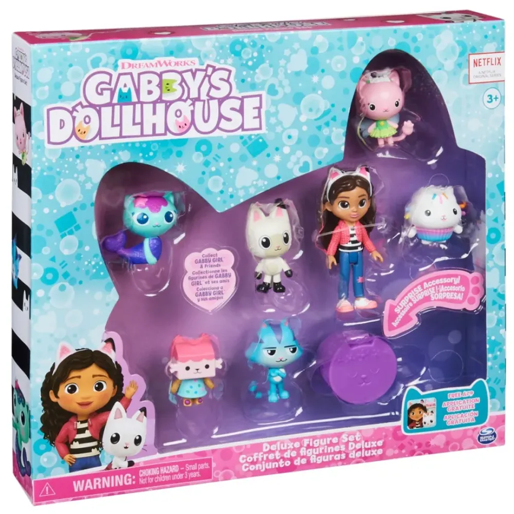 Llevate A Casa A Tus Personajes Favoritos De Gabby’S Dollhouse Con El Deluxe Figure Set. Este Conjunto De Regalo Es Imprescindible Para Los Fans De Gabby’S Dollhouse E Incluye Siete Figuras Coleccionables Y Una Caja Sorpresa Con Un Accesorio Sorpresa En El Interior. Anade De Inmediato A Tu Coleccion Una Figura De Gabby De 8,9 Cm Y Una Figura De Los Gatos De Gabby: Pandy Paws, Mercat, Cakey Cat, Kitty Fairy, Catrat Y Baby Box Cat. Cada Figura Tiene Detalles Que Dan Vida A Los Gatasticos Personajes Del Programa.