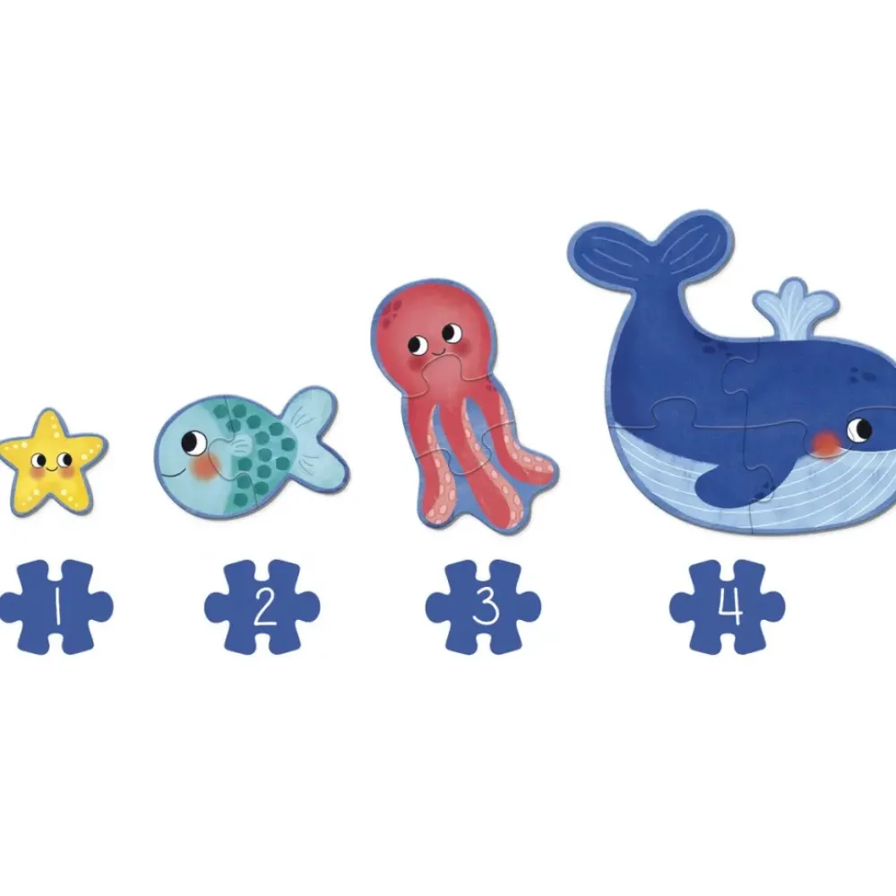 Puzzle De Carton De 18 Piezas Gigantes Inspirado En El Oceano Y Con 4 Personajes Maritimos. Con Este Puzzle, Los Ninos A Partir De 2 Anos, Se Divertiran Mientras Desarrollan La Habilidad Manual Y La Coordinacion Ojo-Mano Montando La Escena Inspirada En El Oceano Maritimo. Ademas Aprenderan Los Numeros Del1 Al 4 Montando Las Piezas De Los Personajes.