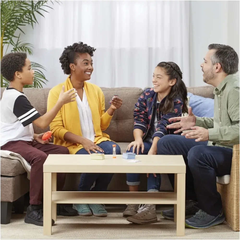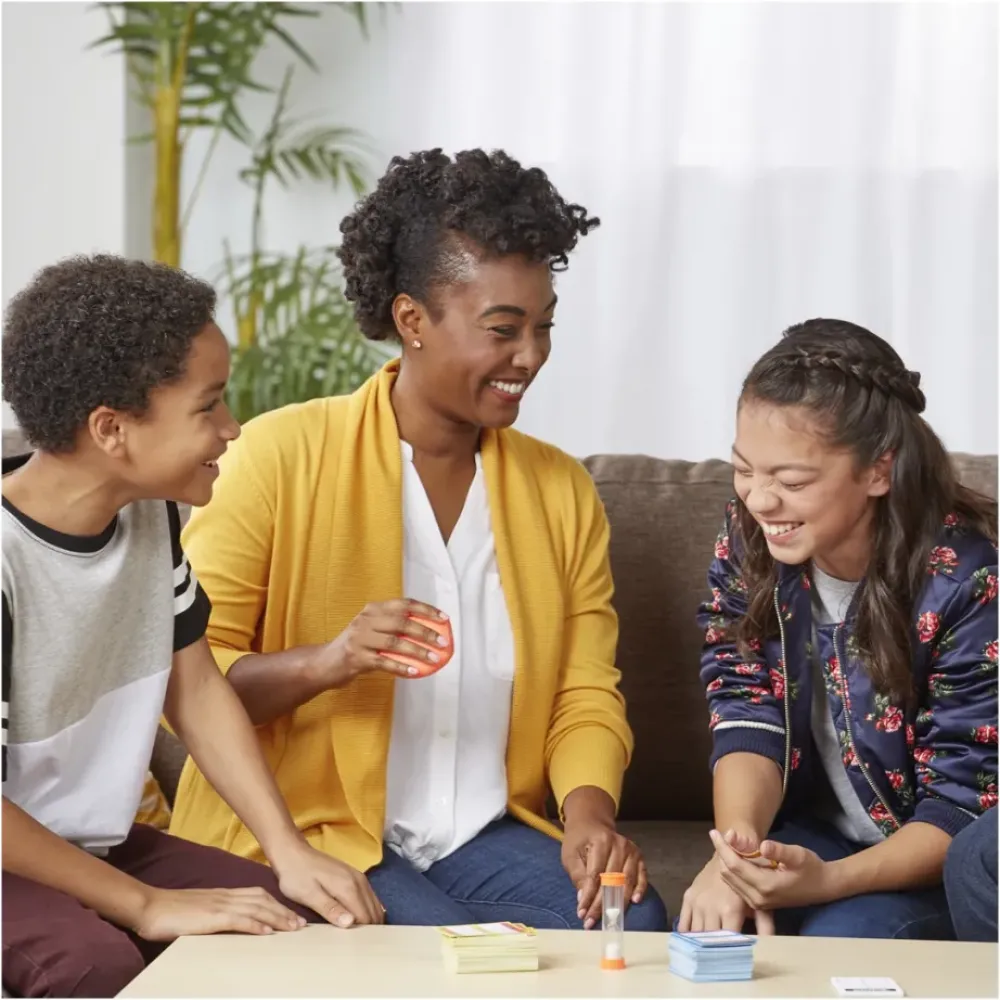 ¡Los Ninos Podran Experimentar Junto A Sus Padres La Emocion Del Juego Taboo! Esta Edicion Familiar Del Juego Incluye 2 Paquetes De Tarjetas; Uno Esta Elaborado Especialmente Para Ninos, E Incluye Una Palabra Clave Conocida Y Solamente 2 Palabras Prohibidas Por Tarjeta. Los Jugadores Corren Contra El Reloj Incluido Tratando De Dar Pistas Para Que Sus Companeros Adivinen La Mayor Cantidad De Palabras Posible En Un Minuto. Pero No Digas Lo Indecible O Sonara La Bocina, Lo Que Significa Que Pierdes El Punto. El Juego Incluye Mas De 1.000 Palabras Clave En 260 Tarjetas – 130 Para Adultos Y 130 Para Ninos. Los Jugadores Se Quedan Con Las Tarjetas Adivinadas, Y El Equipo Con Mas Tarjetas Al Final, Gana El Juego De Inaudita Diversion.
