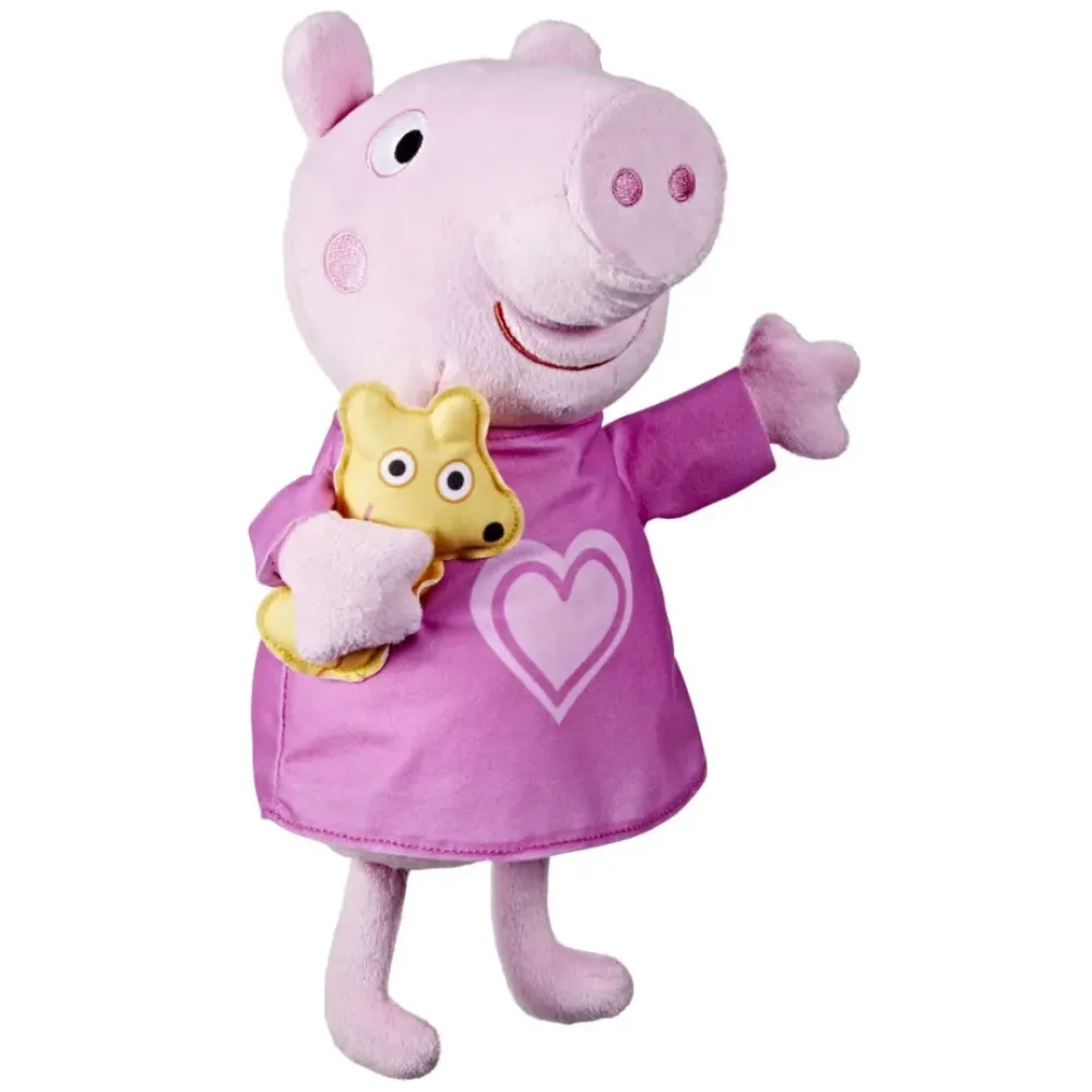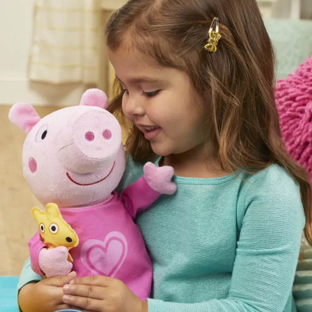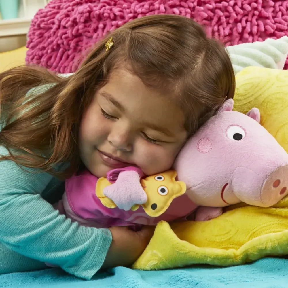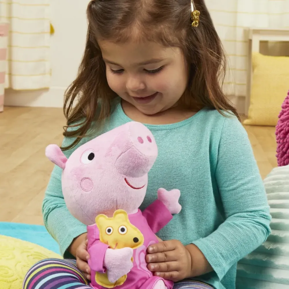 Este Adorable Peluche Rosa De Peppa Canta 3 Canciones Y Dice 3 Frases, Bosteza, Ronca ¡Y Rie Tambien! Ella Es Una Tierna Companera Para Abrazar A La Hora De La Siesta