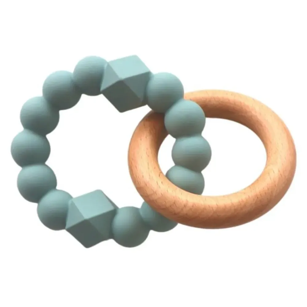 Combina Un Anillo De Denticion De Madera De Haya Con Un Anillo De Denticion De Silicona Texturizada Para Aliviar Los Dientes En Formacion Y Masajear Las Encias Doloridas.