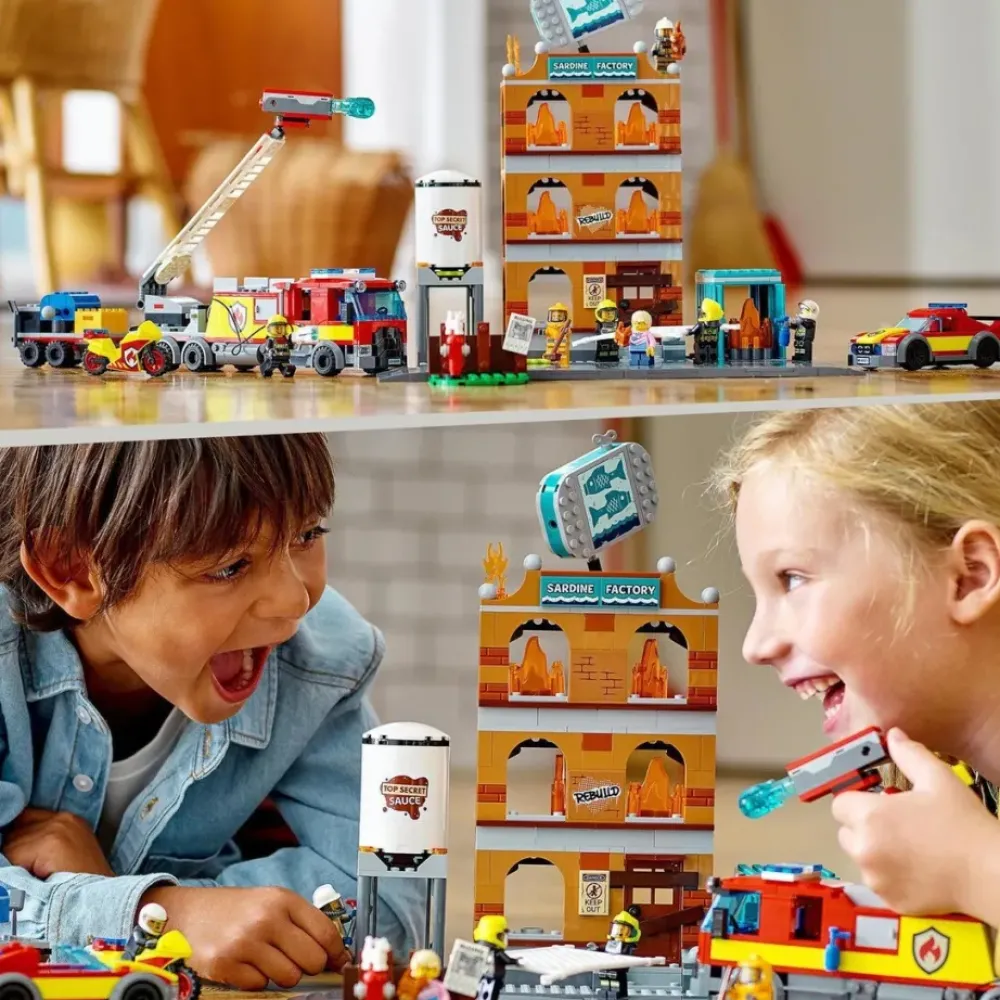 Este Set De Construccion Cuerpo De Bomberos De Lego City Esta Repleto De Ideas Para Un Juego Imaginativo. Este Set De Camion De Bomberos De Juguete Para Ninos Y Ninas De 7+ Anos Incluye Una Fabrica De Sardinas De 3 Plantas Con Llamas Plegables Lego Y Una Olla Para La «Salsa Secreta», Ademas De Un Camion De Bomberos De Juguete Y Un Remolque Que Disparan Elementos De Agua, Una Moto De Bomberos Y La Furgoneta Del Jefe De Bomberos. Anade Las Figuras Del Gato Y El Perro Y Las 5 Mini Figuras, Incluidos 2 Personajes De Lego City, ¡Y Que Comience El Juego! Este Juguete De Bomberos Lego Incorpora Una Guia De Construccion Impresa E Instrucciones De Construccion Digitales. Esta Intuitiva Guia Digital, Disponible En La App Gratuita Instrucciones De Montaje Lego Para Smartphones Y Tabletas, Incluye Alucinantes Funciones De Acercamiento Y Giro Que Permiten A Los Peques Visualizar Su Juguete Desde Todos Los Angulos Mientras Lo Construyen.