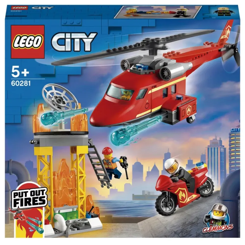 Dale A Tu Fan De La Serie Para Television Lego City: Aventuras En La Ciudad El Gusto De Tener El Juego Lego City Helicoptero De Rescate De Bomberos (60281), Que Incluye Un Helicoptero De Juguete, Una Moto, Una Central Electrica, ¡Y Llamas Lego Apilables Para Crear Llamaradas! Podra Disparar Los Canones De Agua Del Helicoptero Para Apagar El Fuego Y Divertirse Interpretando Con 3 Minifiguras: Un Trabajador, Un Piloto De Helicoptero Y Clemmons, El Heroe Lego City De La Tele.
