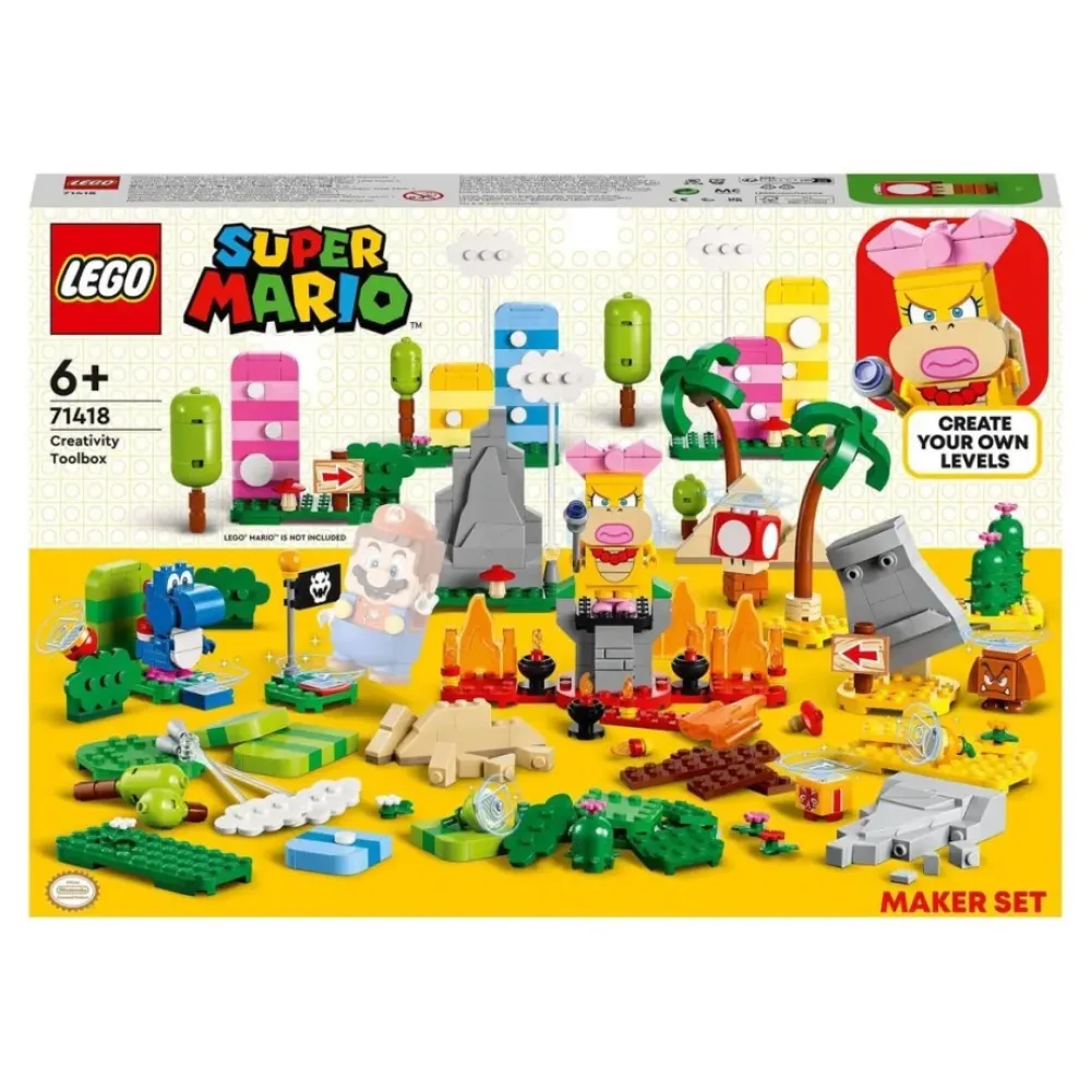 Mejora Los Niveles De Construccion De Lego Super Mario De Los Peques Con El Set Caja De Herramientas Creativas (71418). Este Epico Juguete De Construccion Inspirado En Los Videojuegos Incluye Arboles, Flores, Montanas, Champinones, Piramides, Un Banderin De Etapa Y Mucho Mas Para Recrear El Aspecto De Los Niveles Super Mario En La Hierba, El Desierto Y La Lava.