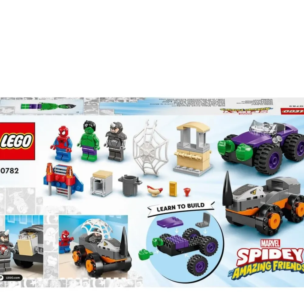 El Juguete De Construccion De Lego Marvel Spidey Y Su Superequipo De Camiones De Combate De Hulk Y Rino (10782) Pone A Los Pequenos Superheroes Al Volante De Un Gran Aventura, Mientras Conducen A Toda Velocidad Para Salvar El Mundo Una Vez Mas. Los Peques Podran Revivir Historias Inspiradas En La Popular Serie De Disney+, Mientras Ayudan A Spider-Man Y Hulk A Impedir Que Rino Asalte Un Banco. A Los Peques Les Encantara El Diseno De Los Vehiculos De Combate De Este Set Construible De Camiones Monstruo De Juguete. Cada’Monster Truck’ Incluye Estupendos Detalles: El Camion De Rhino Tiene Un Cuerno, Mientras Que El De Hulk Cuenta Con Dos Enormes Punos, Listos Para Combatir Contra Sus Enemigos.