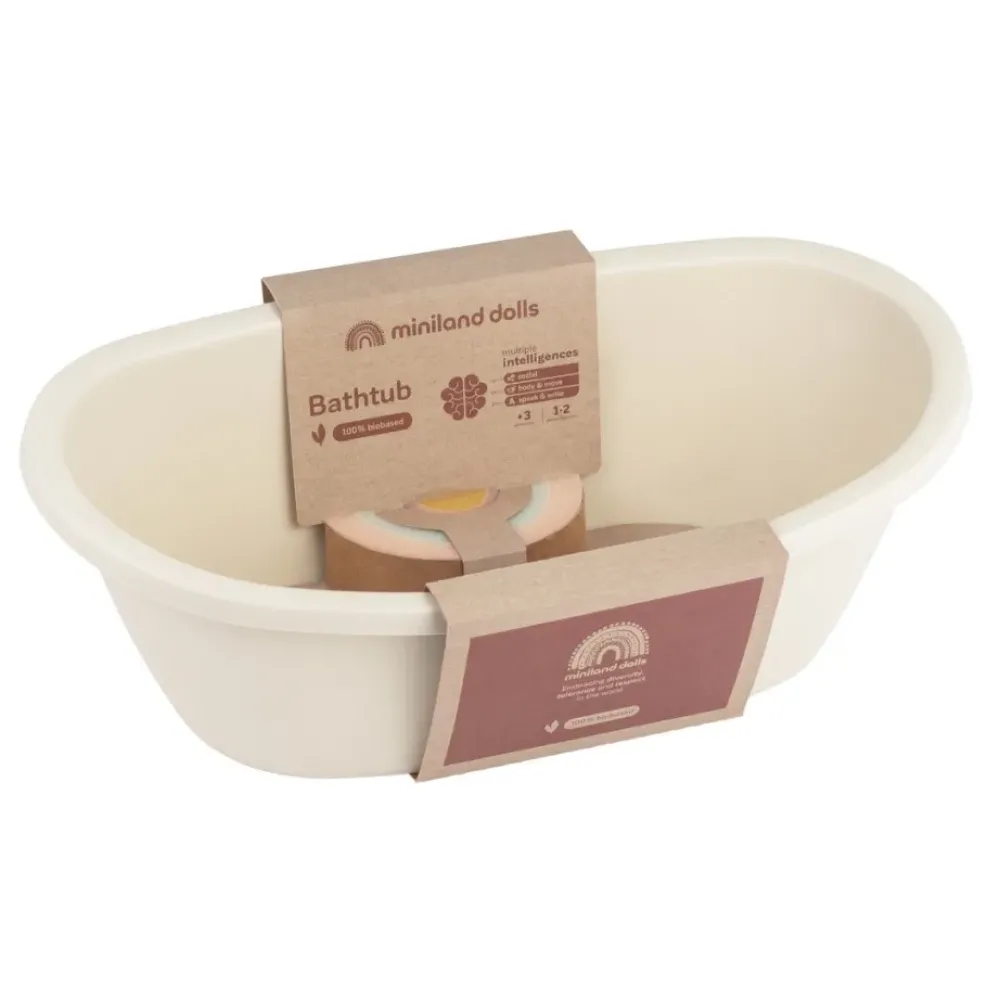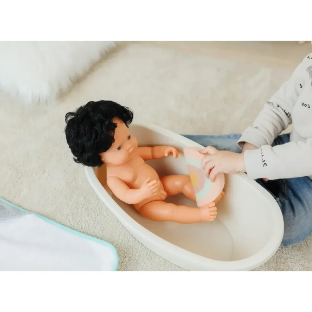 Banera De Bebe Fabricada Con Bioplastico Procedente De La Cana De Azucar, Para Banar A Los Muñecos Y Munecas Miniland Dolls De Hasta 40 Cm. Incorpora Una Esponjita Con Forma De Arcoiris Para Completar El Bano.