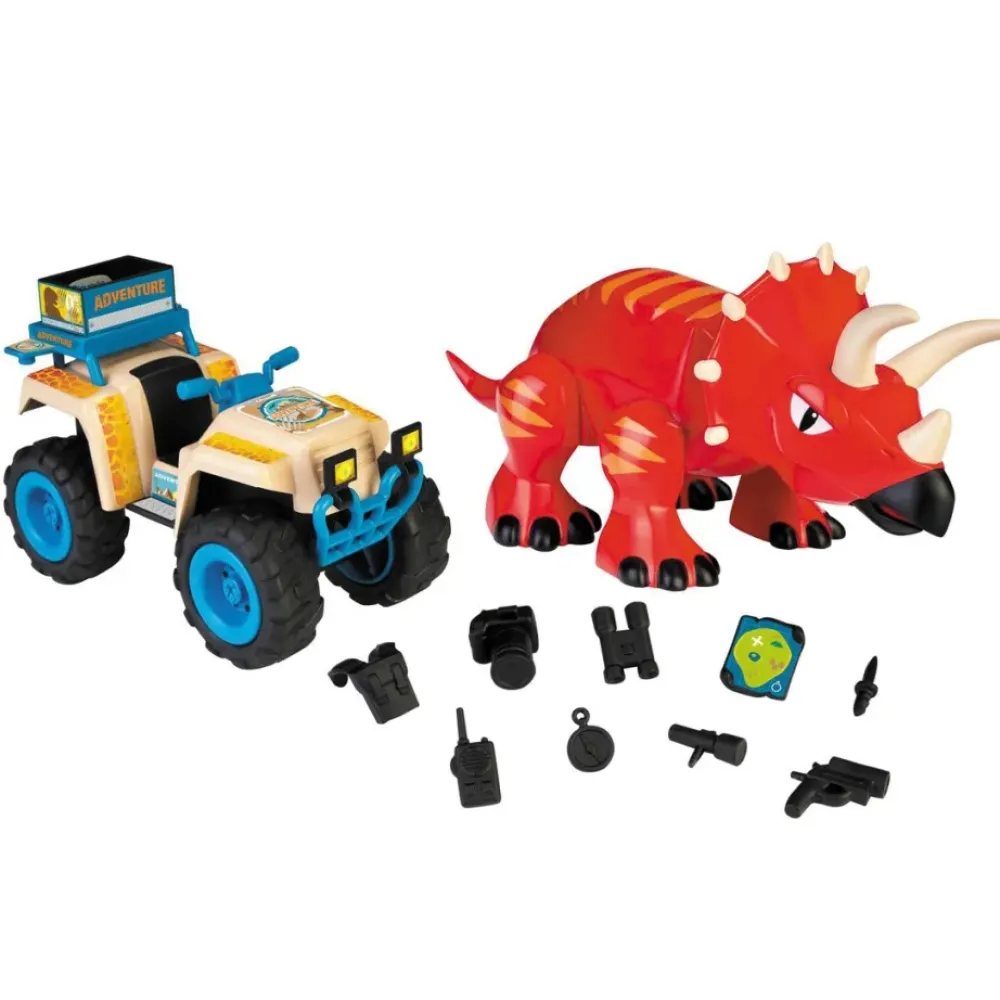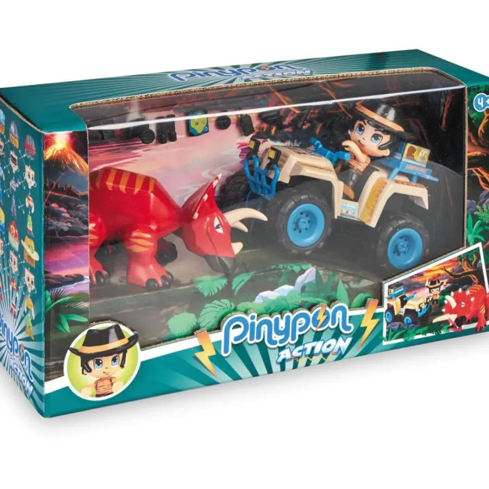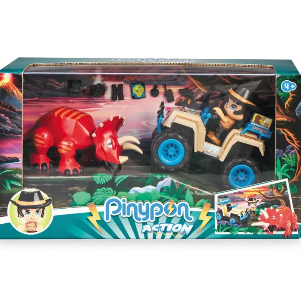 Pinypon Action Wild Quad Con Styracosaurus Es Perfecto Para Los Amantes De Los Dinosaurios. ¡Los Dinosaurios Styracosaurs Tienen Una Gran Cabeza Para Intercambiar Con Las Figura De Pinypon Action! El Quad Tiene Una Caja Para Guardar Los Pequenos Accesorios Y Es Perfecto Para Jugar Y Vivir Miles De Aventurasl. Incluye Dos Figuras Dinosario Y Figura Exploradorpinypon Action Ademas De Pequenos Accesorios.