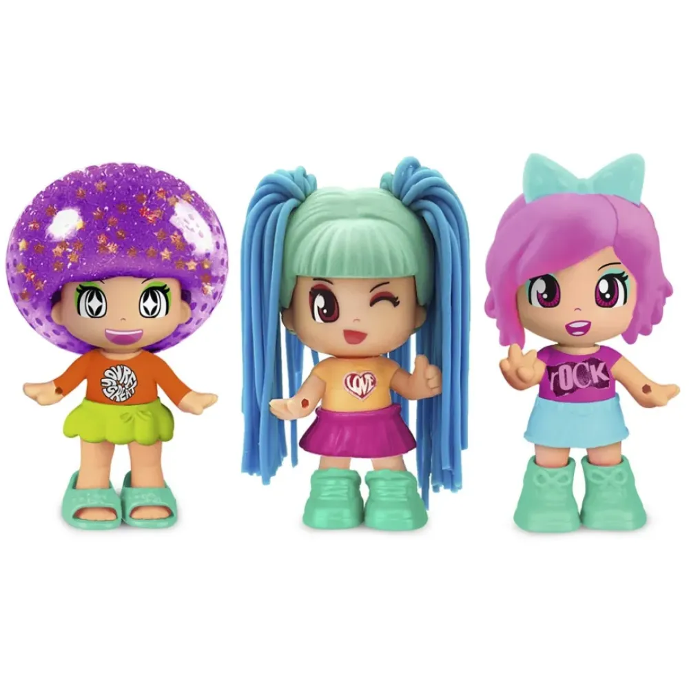 Tres Nuevos Pinypon Con Los Pelos Mas Divertidos. El Pelo Verde Esta Hecho De Fideos Elasticos Y Tiene Muchisimo Movimiento. El Pelo Rosa Es Muy Sueva Y Puedes Apretarlo; Y El Morado Esta Relleno De Liquido Y Es Alucinante Apretarlo.