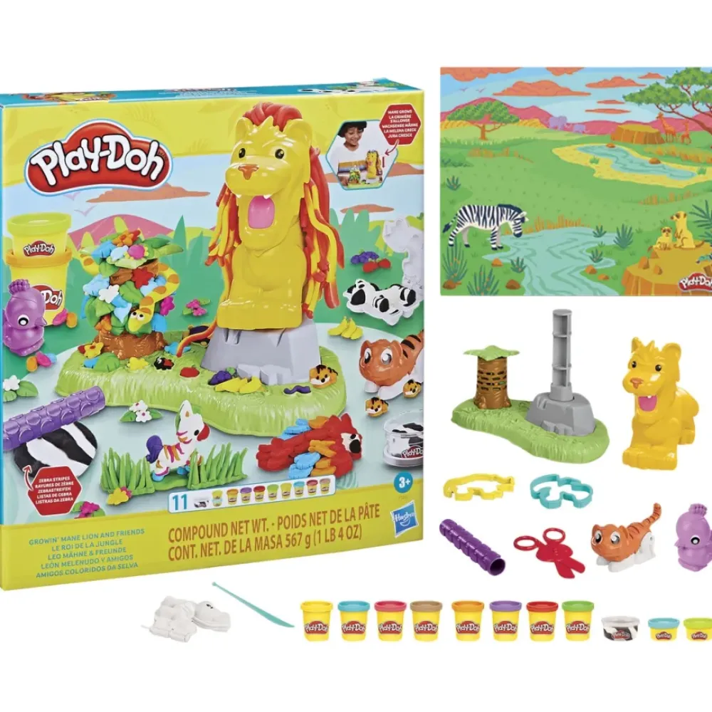 Divertidas Manualidades Infantiles: ¡Este Set De Juego De Play-Doh Con Tematica De Animales Es Superdivertido! Haz Crecer La Melena Del Leon Y Estilizala. Despues, Presiona, Estampa Y Moldea Otros Animales, Plantas, Flores Y Mucho Mas