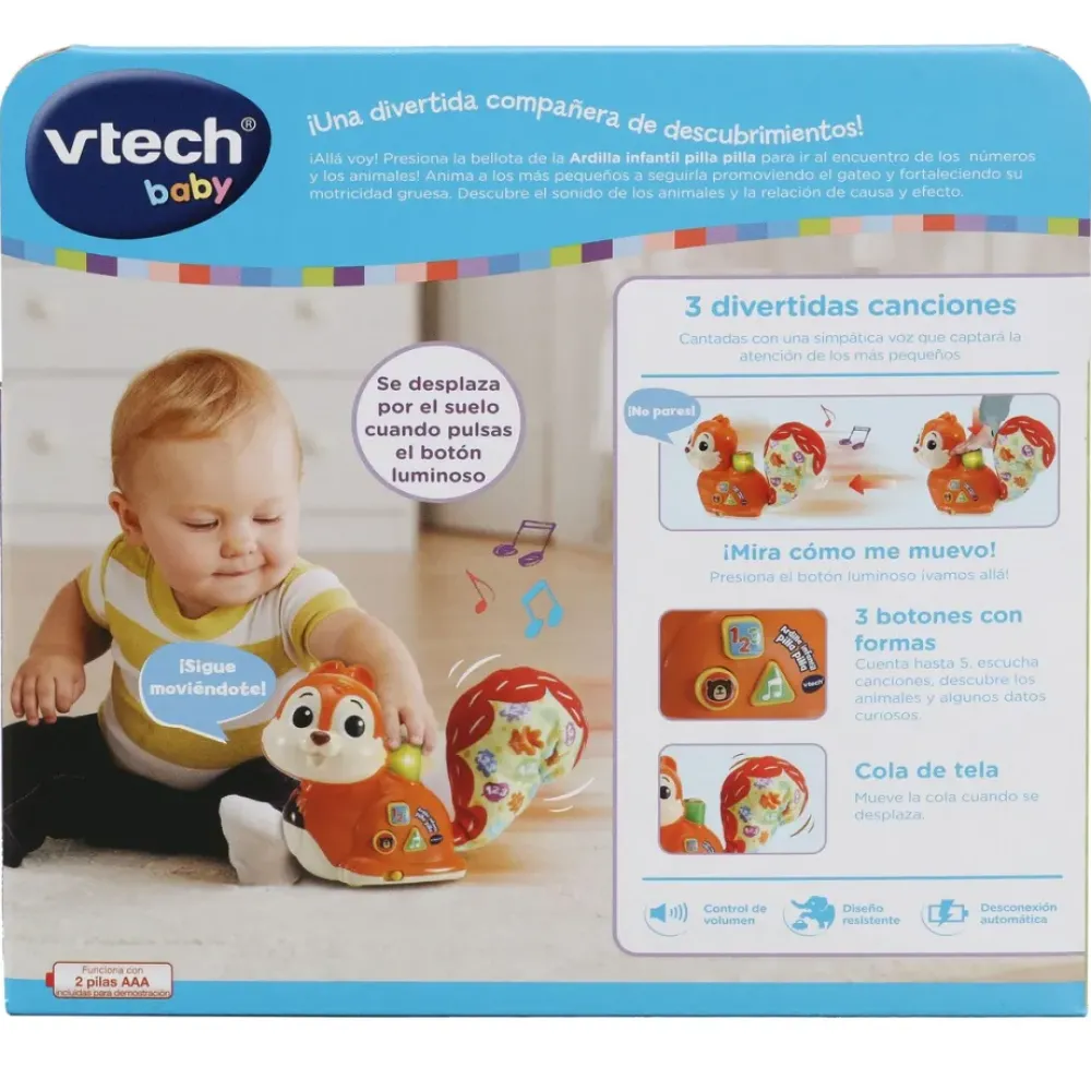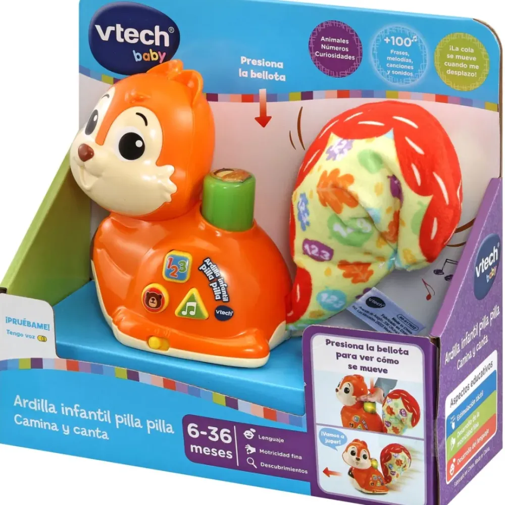 VTech Preescolar*Juguete Para Bebes Ardilla Infantil Pilla Pilla Camina Y Canta, Animal Interactivo Para Aprender A Gatear Baby