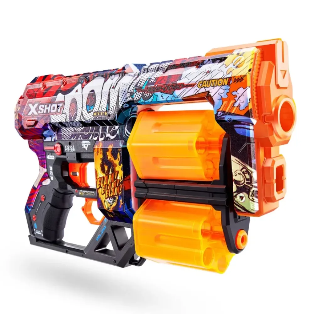 X-Shot Skins Te Ofrece La Experiencia De Traer Tu Skin-Blaster Al Mundo Real. ¡El X-Shot Skins Dread Con Doble Tambor Giratorio Para No Parar En La Batalla,Tiene Suficiente Potencia Para Enfrentarse A Objetivos A 27 Metros De Distancia! Elige Tu Modelo. Hay 5 Diferentes Y Muchos Mas Por Venir.Viene Con 12 Dardos De Espuma Air Pocket Technology, Ahora Mas Precisos ¡Elije Diferente, Elije X-Shot Skins!