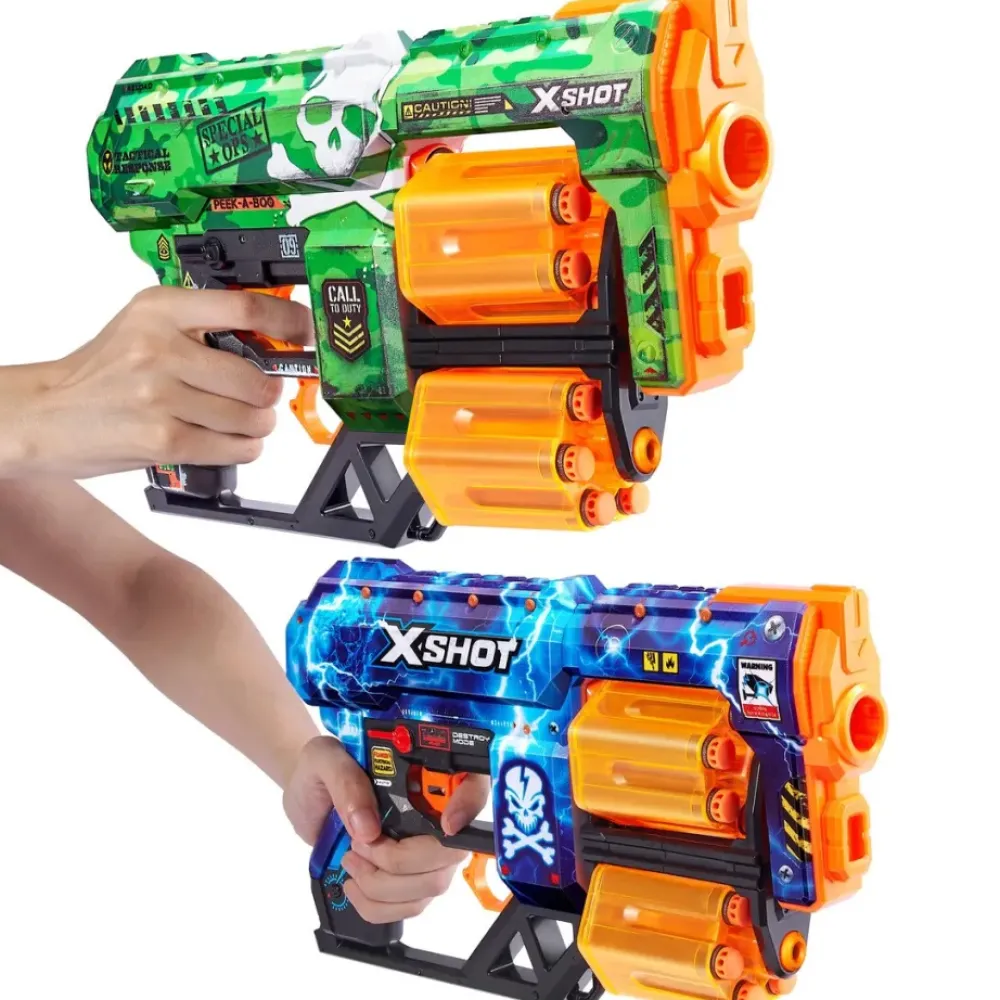 X-Shot Skins Te Ofrece La Experiencia De Traer Tu Skin-Blaster Al Mundo Real. El Combo-Pack X-Shot Skins Doble Dread Viene Repleto De Diversion. Comparte Con Tu Mejor Amigo Y Preparaos Para Una Batalla Epica. 2 Disenos Skin Alucinantes, Ademas De 48 Dardos De Espuma Air Pocket Technology, Ahora Mas Precisos ¡Elije Diferente, Elije X-Shot Skins!